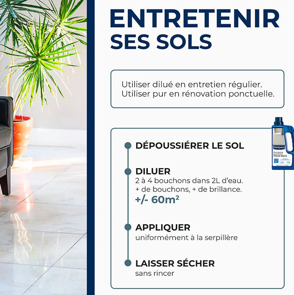 Shampoing autolustrant 2 en 1 tous sols intérieurs Starwax 1L