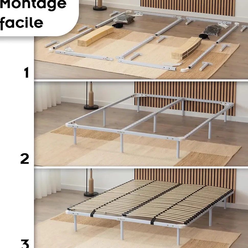 - Ce sommier à lattes robuste en acier offre une combinaison idéale de style et de confort.