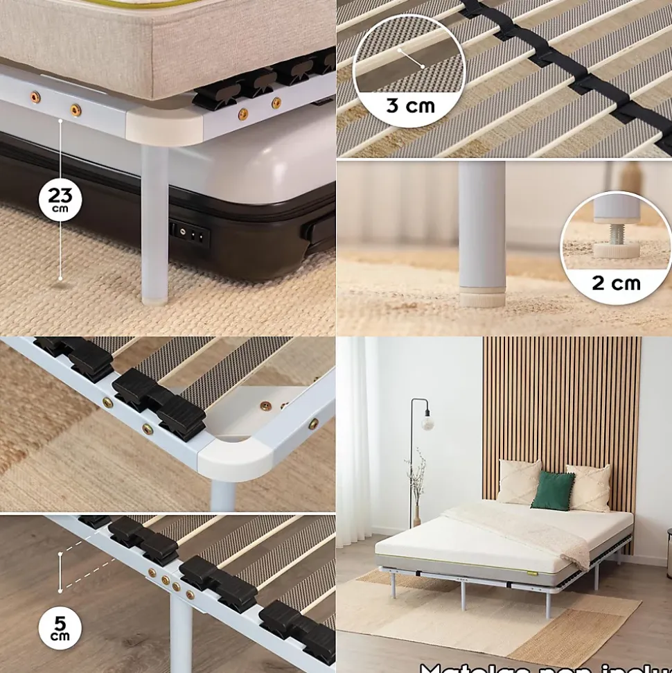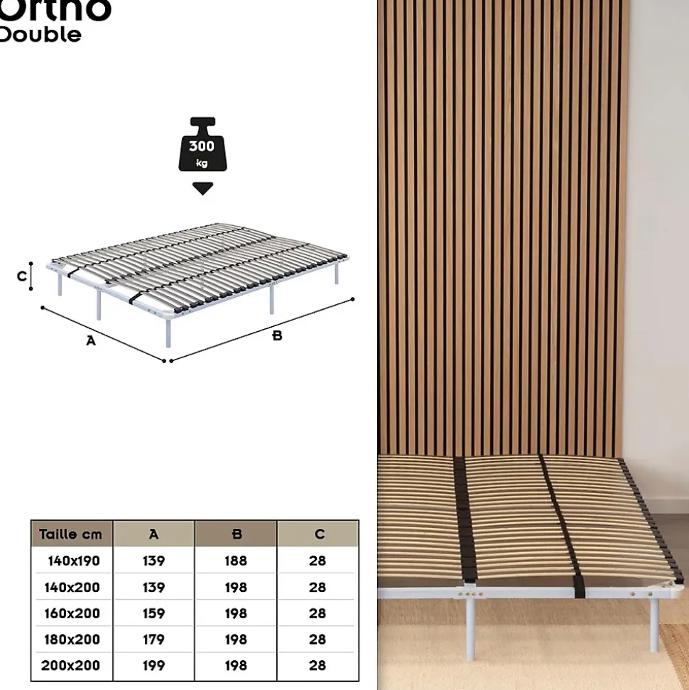 - L’écartement maximal entre les lattes est de 3 cm, garantissant une aération optimale du matelas.
