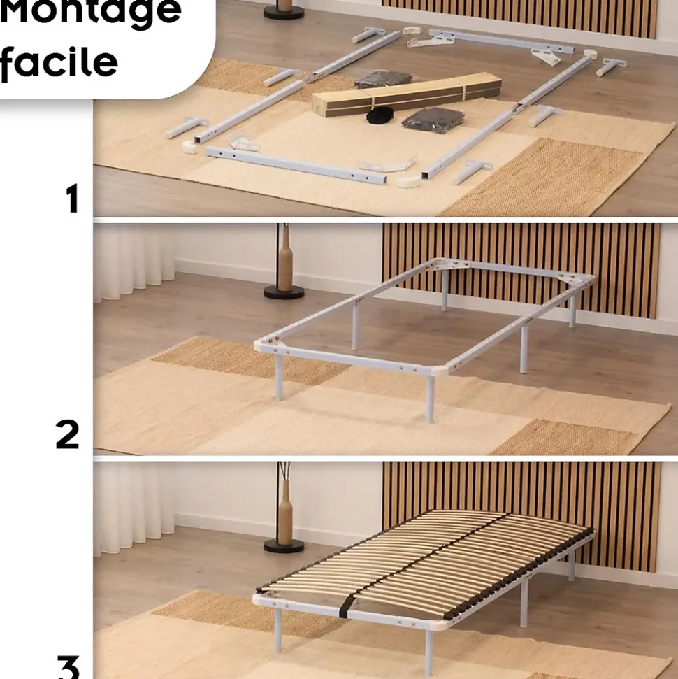 - Ce sommier à lattes robuste en acier offre une combinaison idéale de style et de confort.