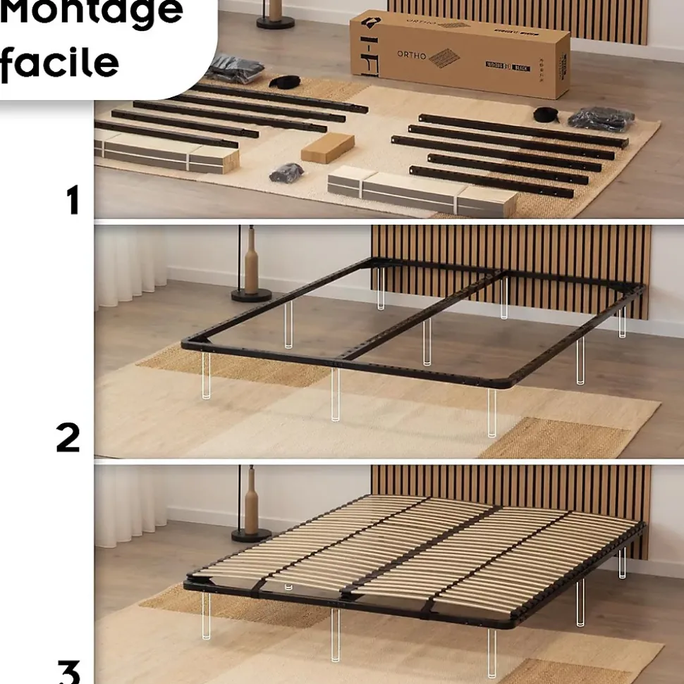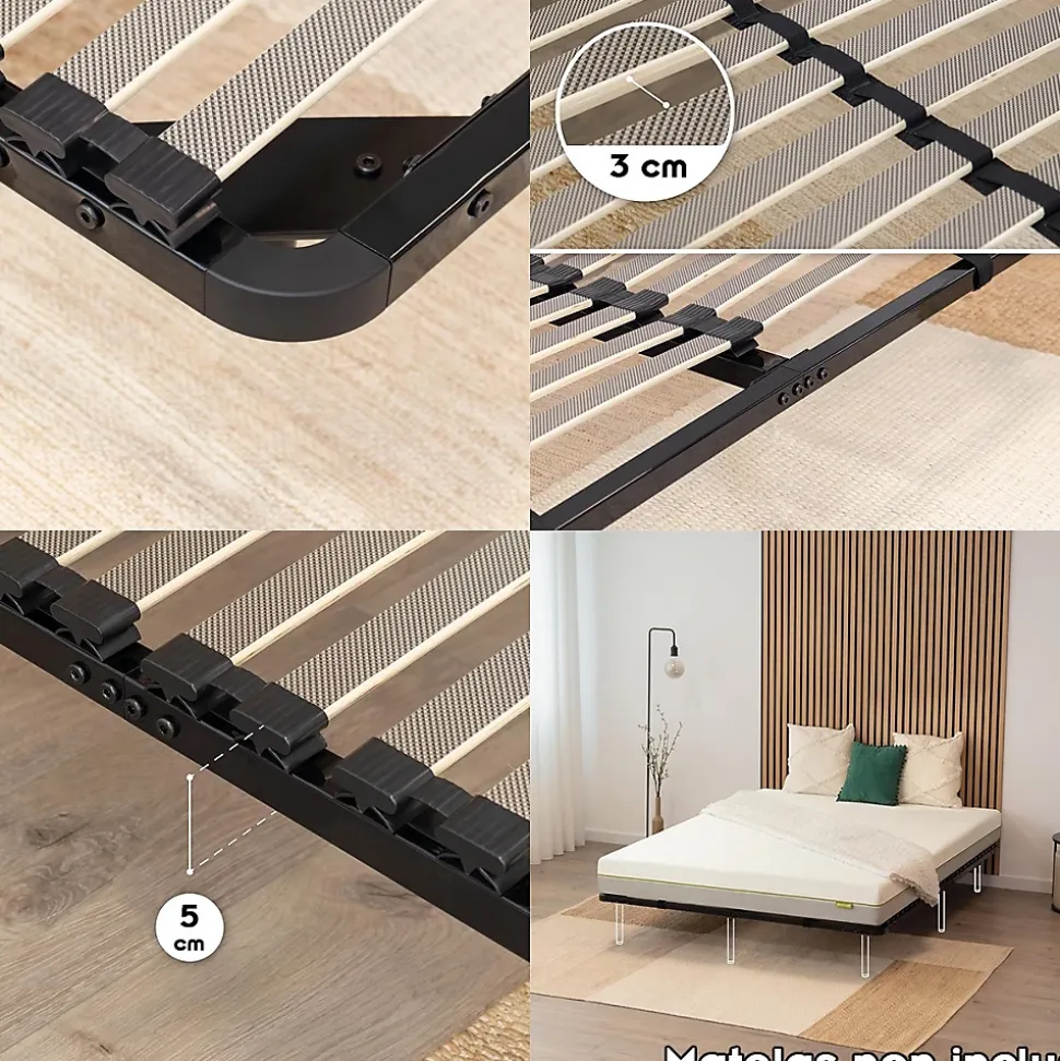 Sommier à Lattes En Acier Avec Bande Stabilisatrice Noir 160×200 Cm Sans Pieds