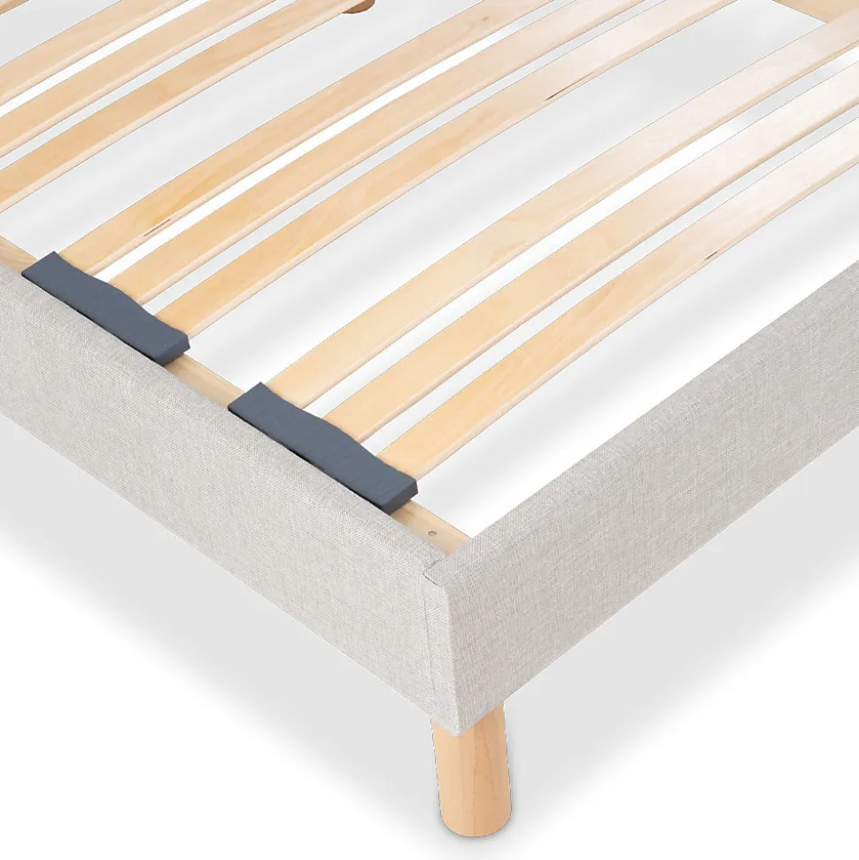 - DESIGN : Finitions soignées (revêtement qui s’accorde avec tous types d’intérieurs et pieds en bois assortis au sommier) – CONFORT : Lattes flexibles – HYGIENE : Favorise l’aération du matelas.