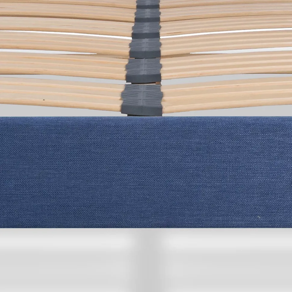 - COMPOSITION : Cadre en bois d’épicéa recouvert de tissu d’ameublement bleu marine – Lattes en placage de bouleau – Embouts en polyéthylène – Pieds en bois de hêtre.