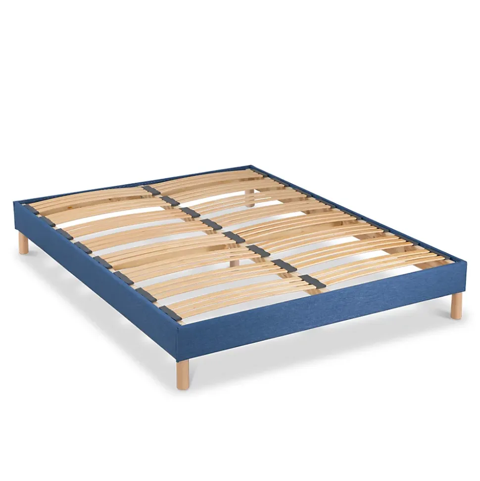 CARACTERISTIQUES :Type de sommier : Sommier à lattesSuspension : Tri-lattes activesCouleur : Bleu marineDimensions : 140×190 cmHauteur sommier (pieds montés) : 30 cmEpaisseur du cadre : 14 cmHauteur des pieds : 16 cmNombre de pieds (inclus) : 4Nombre de lattes : 2x24Dimensions des lattes : 36 mm de largeur – 8 mm d’épaisseurComposition : Structure, lattes, pieds, fixations et visserieConditionnement : En kitFabrication : BelgiqueGarantie : 5 ansCOMPOSITION :Cadre : Bois d’épicéa recouvert de tissu d’ameublement bleu marineLattes : Placage de bouleauEmbouts : Polyéthylène gris tri-lattesPieds : Cylindres en bois de hêtreTissu d’ameublement labellisé Oeko-Tex – Cours et longs pans certifiés PEFC (bois issu de forêts gérées durablement)POINTS FORTS :Confort : Lattes flexibles.Hygiène : Favorise l’aération du matelas.Finitions soignées : Revêtement qui apporte originalité et élégance à votre intérieur.Robustesse : Renforts transversaux et longitudinaux.Transport facile : Livré en kit avec notice de montage dans un carton de 215x25x25 cm.Intégrable dans un cadre de lit.MONTAGE :Montage facile en 20 à 30 minutes.