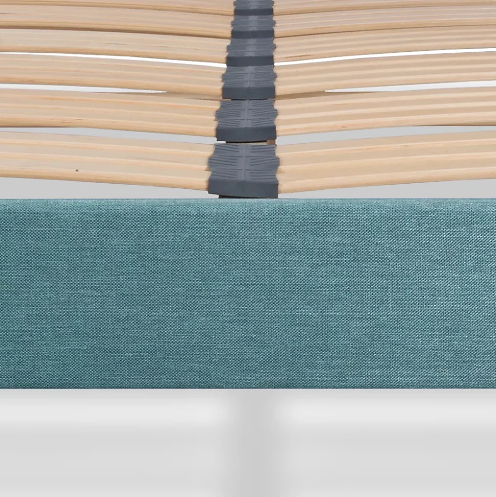 CARACTERISTIQUES :Type de sommier : Sommier à lattesSuspension : Tri-lattes activesCouleur : Vert d’eauDimensions : 160×200 cmHauteur sommier (pieds montés) : 30 cmEpaisseur du cadre : 14 cmHauteur des pieds : 16 cmNombre de pieds (inclus) : 4 (+ 1 pied central)Nombre de lattes : 2x24Dimensions des lattes : 36 mm de largeur – 8 mm d’épaisseurComposition : Structure, lattes, pieds, fixations et visserieConditionnement : En kitFabrication : BelgiqueGarantie : 5 ansCOMPOSITION :Cadre : Bois d’épicéa recouvert de tissu d’ameublement Vert d’eauLattes : Placage de bouleauEmbouts : Polyéthylène gris tri-lattesPieds : Cylindres en bois de hêtre – Pied central en boisTissu d’ameublement labellisé Oeko-Tex – Cours et longs pans certifiés PEFC (bois issu de forêts gérées durablement)POINTS FORTS :Confort : Lattes flexibles.Hygiène : Favorise l’aération du matelas.Finitions soignées : Revêtement qui apporte originalité et élégance à votre intérieur.Robustesse : Renforts transversaux et longitudinaux.Transport facile : Livré en kit avec notice de montage dans un carton de 215x25x25 cm.Intégrable dans un cadre de lit.MONTAGE :Montage facile en 20 à 30 minutes.