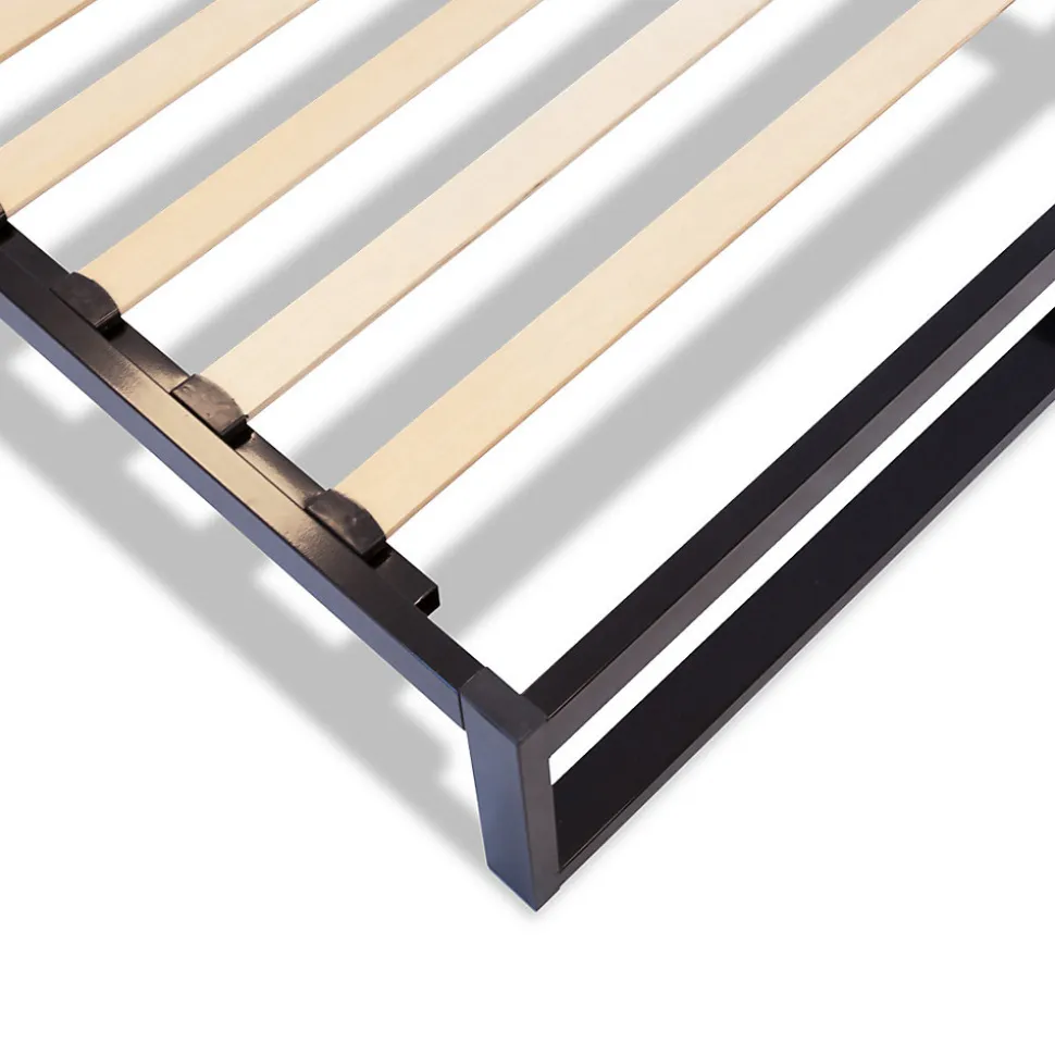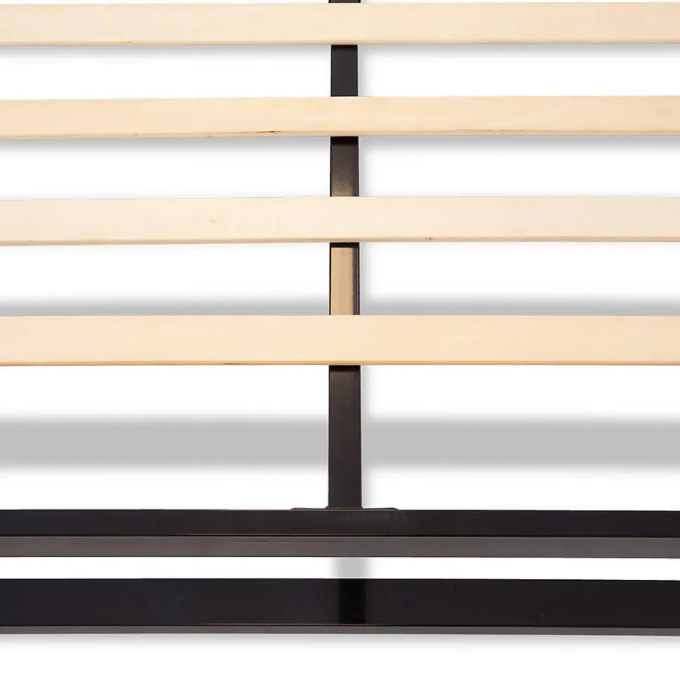 - COMPOSITION : Cadre en métal enduit de poudre – Lattes en bois multiplis (peuplier) – Pieds en métal enduit de poudre.