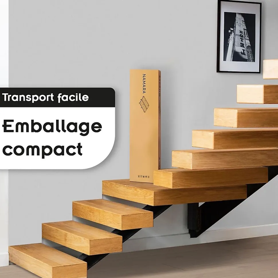 NAMARA Sommier à lattes robuste avec pieds en acier – Montage facile CARACTÉRISTIQUES : Ce sommier à lattes est fabriqué en acier de haute qualité. Il est robuste et résistant et offre une combinaison idéale de fonctionnalité, de style et de confort. Utilisé comme lit d’appoint ou comme lit principal, ce lit métallique séduit par sa polyvalence. Il est parfait pour une chambre, une chambre d’amis ou une chambre d’adolescent. Les lattes en bois, espacées de 7,5 cm, permettent une meilleure aération du matelas et donc une meilleure durée de vie. Les pieds inclus (6 pour les modèles simples, 9 pour les modèles doubles) offrent un espace de rangement supplémentaire de 25 cm de haut. Pour les modèles doubles, 1 pied central permet un renfort central et un meilleur maintien. Garantie 2 ans. Convient à tous types de matelas courants (non inclus). À monter, montage facile. Pour les modèles 1 place : Nombre de lattes : 14. Poids maximum : 150 kg. Pour les modèles 2 places : Nombre de lattes : 28 (14 rangées de lattes, 1 latte de chaque côté). Poids maximum : 300 kg (150 kg de chaque côté). DIMENSIONS ET POIDS : Modèle 90 x 200 : L 198 cm x l 90 cm x H 32 cm. Modèle 140 x 200 : L 198 cm x l 140 cm x H 32 cm. Modèle 160 x 200 : L 198 cm x l 160 cm x H 32 cm. Modèle 180 x 200 : L 198 cm x l 180 cm x H 32 cm. Modèle 200 x 200 : L 198 cm x l 200 cm x H 32 cm. À NOTER : pas de livraison en Corse ou sur les îles.