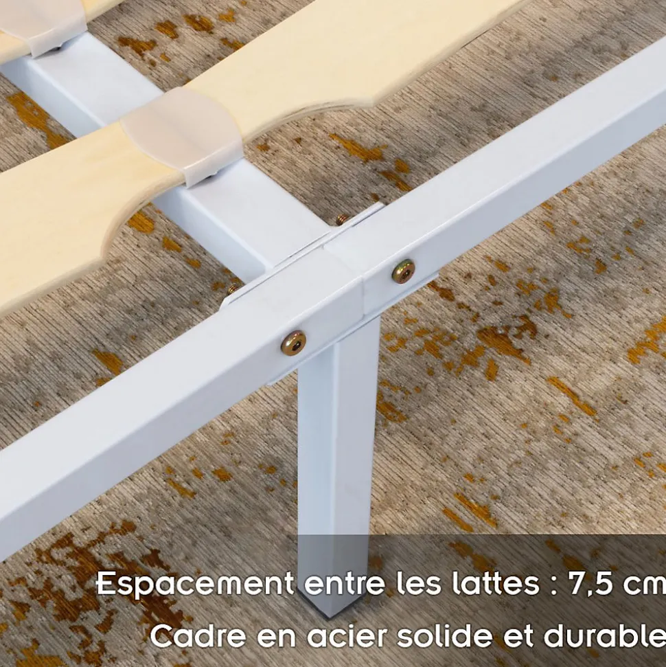 Sommier à Lattes Robuste Avec Pieds En Acier – Montage Facile – 180×200 Cm Blanc
