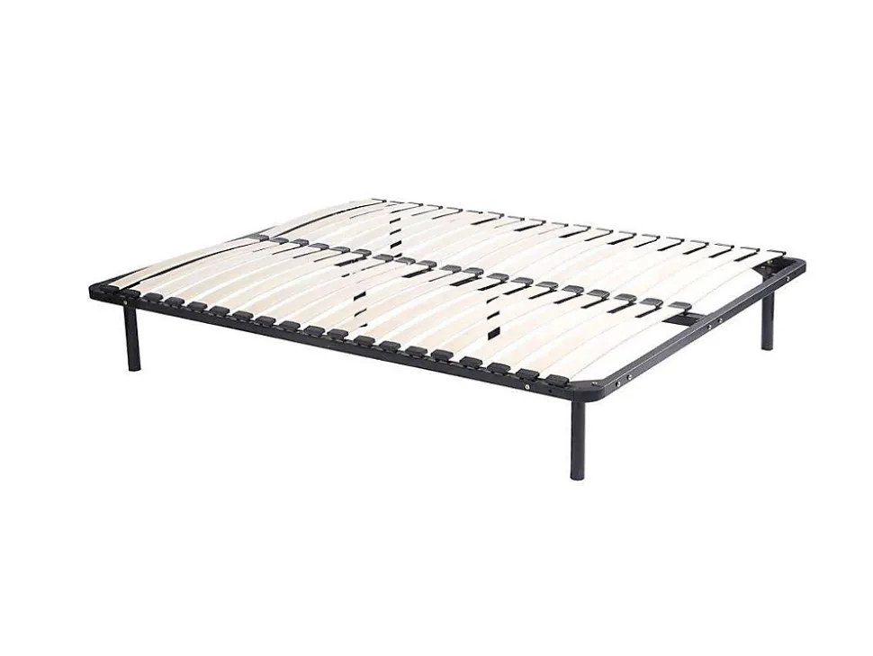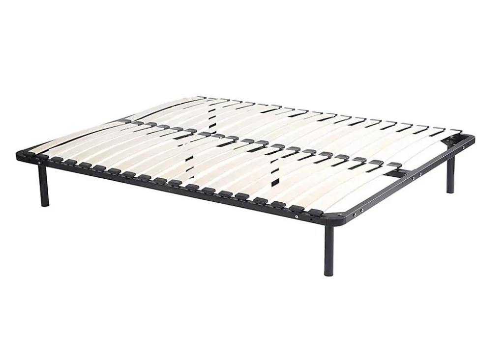 Un confort aussi agréable que son prix.1 x Cadre à lattes KALISTACaractéristiques Couleur (nuance) : Noir Matière (précision) : Métal Epaisseur métal : 1.2 mm Taille (couchage) : 160 x 200 cm Nombre de places : 2 places Sans pieds Technologie (sommier) : Lattes actives Nombre de lattes : 38 lattes Matière des lattes : Bois (peuplier) Charge maximale supportée : 250 kg À monter soi-même : Cadre métal laqué epoxy cintré sur chantDimensions Longueur : 198 cm Hauteur : 5 cm Profondeur : 158 cm1 x Lot de 6 pieds cylindriques pour cadre à lattes – Noirs – BOLGARECaractéristiques Couleur (nuance) : Noir Matière (précision) : Métal Avec piedsDimensions Longueur : 3.8 cm Hauteur : 25 cm Profondeur : 3.8 cmLivraisonLors de la livraison, il est conseillé de vérifier que le bon nombre de colis a été livré.Colis1 x Cadre à lattes KALISTAColis n°1 : Longueur 205 cm, Largeur 33 cm, Hauteur 7 cm, Poids 20 kg. 1 x Lot de 6 pieds cylindriques pour cadre à lattes – Noirs – BOLGAREColis n°1 : Longueur 35 cm, Largeur 31 cm, Hauteur 5 cm, Poids 2 kg.