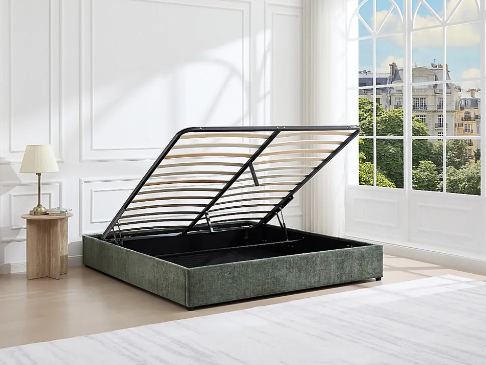 - Optez pour la praticitié du sommier coffre 160 x 200 cm queen size en tissu texturé Vert – Pistons à gaz – FIRMEO de YSMÉE – Commandez dès maintenant !
