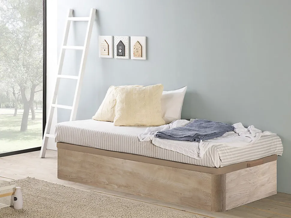 - Optez pour la praticité du Sommier coffre 90 x 190 cm Naturel clair – Pistons à gaz Barre d’arrêt – HESTIA de Ysmée – Commandez dès maintenant !