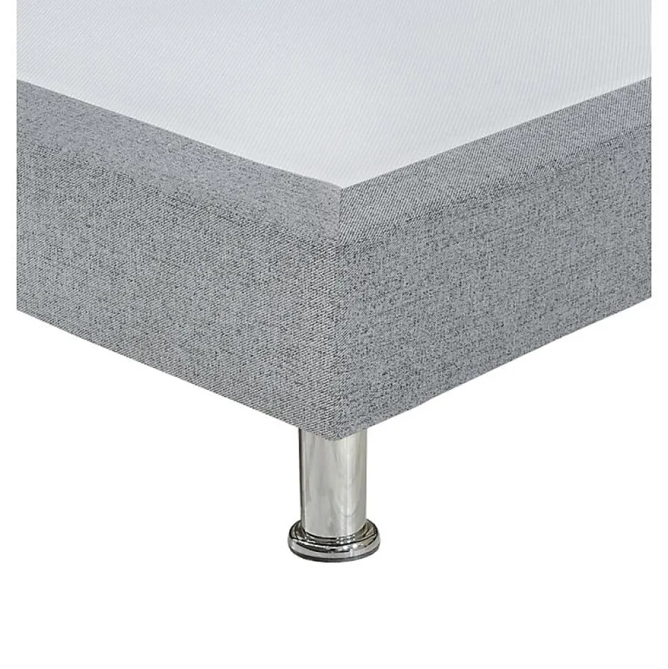 Découvrez le sommier tapissier 160 x 200 cm en bois massif et tissu gris clair REMIMOS. Apportez une touche d’élégance dans votre chambre grâce à ce sommier tapissier gris clair ! Sa couleur apporte une sobriété qui lui permettra de se fondre dans tous les styles. Ses piètements en métal et les lattes en bois massif soutiendront fermement votre matelas non inclus pour vous permettre un sommeil réparateur dans le plus grand des conforts ! Existe également en d’autres tailles. Caractéristiques : PRODUIT : Sommier tapissier 160 x 190 cm en bois massif et tissu gris clair REMIMOS. COULEUR : Gris. COMPOSITION : Structure en bois massif. Revêtement déhoussable en tissu 60% coton et 40% polyester. Piètements en métal. DETAILS : Matelas et linge NON INCLUS. 4 pieds + 1 pied de soutien INCLUS pour plus de solidité. DIMENSIONS GENERALES APPROXIMATIVES : Longueur 202 cm x Hauteur 27 cm x Profondeur 162 cm. ATTENTION : La couleur de l’article peut légèrement varier par rapport au produit présenté sur la photo. ENTRETIEN : Ne pas utiliser de produits ou accessoires abrasifs. Nettoyage professionnel conseillé. LIVRAISON : Uniquement devant votre maison ou au pied de votre immeuble. Pas de livraison en étage ou d’installation. Prise de rendez-vous SMS par le transporteur. NOMBRE DE COLIS : 1. MONTAGE : A monter soi-même.