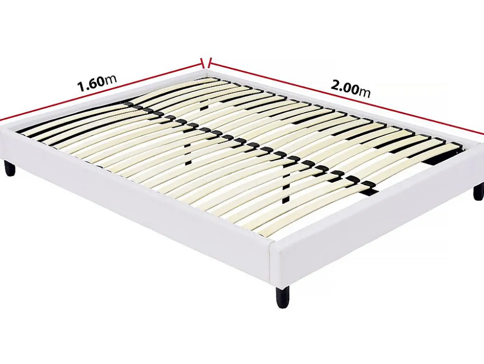 Un couchage 160 x 200 cmCe sommier est parfait pour aménager votre chambre ou la chambre d’amis d’un grand lit. Il conviendra pour n’importe quel type de matelas (mousse, ressorts ou latex) de dimensions 160 x 200 cm. Grâce à une hauteur de 28 cm ni trop basse et ni trop haute, vous disposerez d’une hauteur agréable sur laquelle déposer votre matelas.Allongez la durée de vie de votre matelasLe sommier tapissier à lattes est le mobilier qu’il vous faut pour protéger votre matelas. En plus de le surélever, il renforce les propriétés de votre matelas et améliore votre installation. Un sommier tapissierEn plus d’être pratique, ce sommier dispose également d’un design soigné. Sa structure en bois est enveloppé dans un tissu en polyester, mis en valeur par un garnissage en mousse discret. Tout son design est pensé pour se fondre lement dans votre chambre à coucher. À la fois chic et discret, le style de ce sommier vous permet de l’assortir librement et sans contrainte à la décoration de votre chambre.Une literie qui respireContrairement au sommier entièrement tapissé, celui-ci l’est que partiellement. Le fait de recouvrir uniquement le cadre permet à l’air de circuler entre les lattes et facilite l’aération de votre matelas en continu. Sommier tapissier – Dimensions matelas : 160 x 200 cm – 13 lattes – Structure en contreplaqué – Cadre recouvert de polyester – Pieds fournis – Blanc .Descriptif du sommier: Sommier tapissier pour matelas 160 x 200 cm Structure en bois Revêtement tissu – 13 lattes en bois Supporte jusqu’à 200 kg Pieds fournisCouleurs: blancDimensions: 170 x 214 x 28 cmDimensions du couchage: 170 x 214 cmCoutil / finition: Revêtement en polyesterGarnissage: En mousseMatières: TissuStructure: ContreplaquéCaractéristiques produit: Lattes : 80.7 x 5.3 cm – Épaisseur : 9 mm – 13 lattes – En contreplaquéTaille: 160 x 200 cmpieds: Founispieds: 5 x 5 x 10 cmColisage: 2 colis : – 2,1 x 0,24 x 0,22 m, 16,3 kg – 1,745 x 0,47 x 0,105 m, 12,9 kg