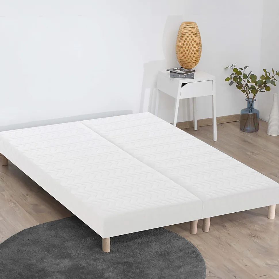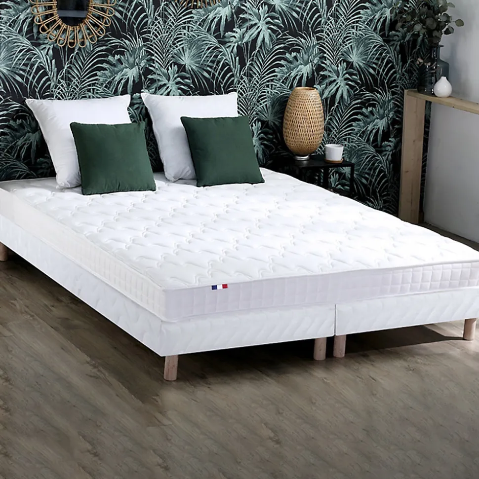 SOMMIER TAPISSIER BLANC A LATTES AVEC JEU DE 4 PIEDS – Sommier en bois massif déco hauteur : 12 cm hors pieds.- Composition tissu : Polyester 77%, Polypropylène 23% (matelassé 5mm de mousse).- Isolation sur du feutre pour renforcer le sommier et améliorer le confort. – Caisse en épicéa.- 12 lattes rigides – Barre de renfort centrale.- Toile de fond anti poussière.- Jeu de 4 pieds bois brut d’une hauteur de 12 cm bois brut par sommier. – Garantie 2 ans LABEL Pour fabriquer ce sommier , nous utilisons des matériaux renouvelables comme le bois certifié PEFC*, plutôt que des énergies ou des ressources épuisables. PEFC* certifie la gestion durable des forêts et rassemble autour d’une vision multifonctionnelle et équilibrée de la forêt dans 55 pays à travers le monde. Depuis 20 ans, PEFC France favorise l’équilibre entre les dimensions environnementales, sociétales et économiques de la forêt grâce à des garanties de pratiques durables et l’implication de 74 500 propriétaires forestiers et de plus 3 100 entreprises en France. LIVRE SANS MATELAS
