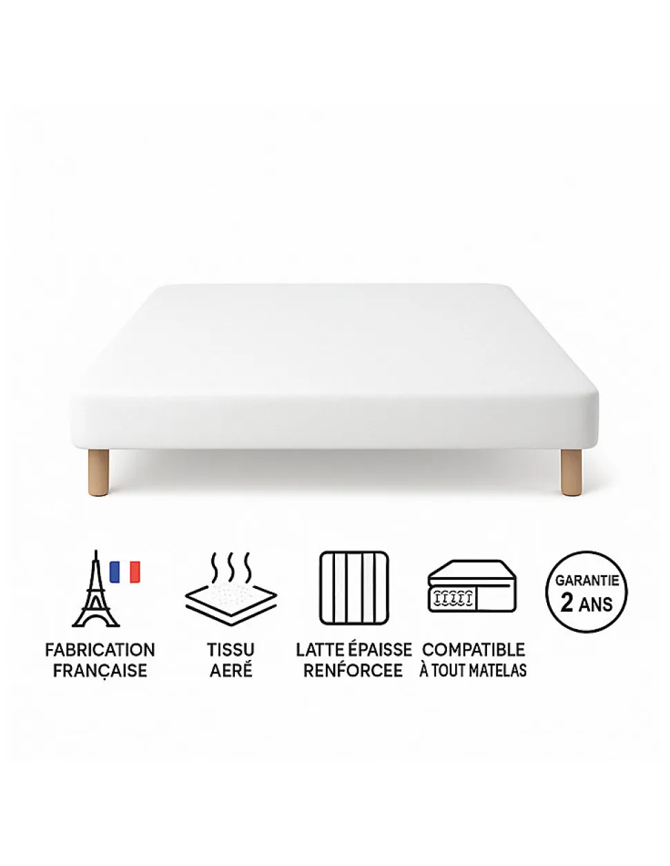 SOMMIER TAPISSIER BLANC 130x190 cm FABRICATION FRANÇAISE ARTISANALE PIEDS OFFERTS HAUTEUR avec PIEDS 27 cm