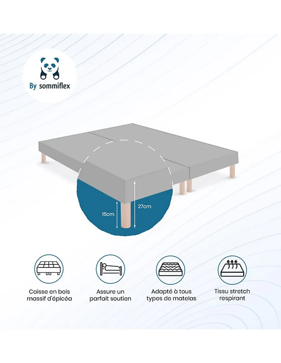 SOMMIER TAPISSIER GRIS 100x200x2 (200x200) FABRICATION FRANÇAISE ARTISANALE PIEDS OFFERTS HAUTEUR avec PIEDS 27 cm
