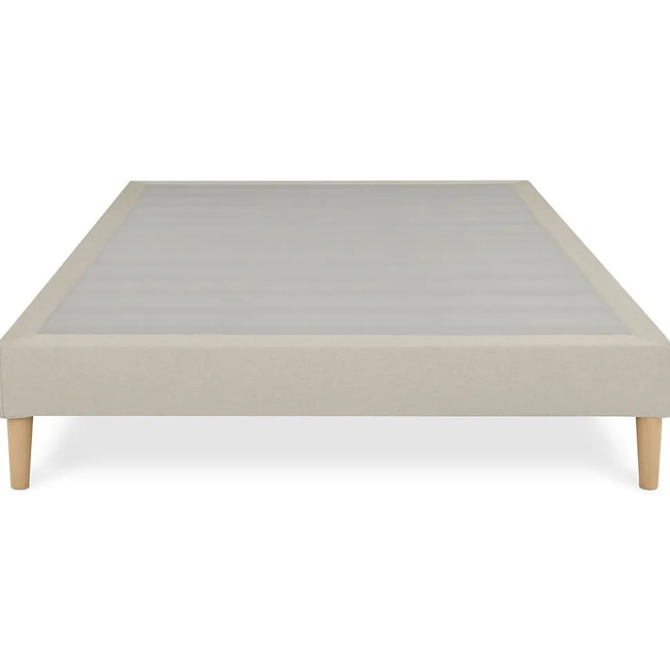 Sommier tapissier QuimperApportez un confort supérieur à votre lit avec ce sommier tapissier à lattes, pensé pour favoriser une répartition équilibrée du poids et atténuer les bruits de mouvement. Son habillage en tissu recouvre les lattes, préservant la structure de l’usure et de la poussière, ce qui contribue à prolonger sa longévité. Doté de barres de renfort centrales, il offre une stabilité renforcée, et ses pieds ronds ajoutent une note d’élégance tout en assurant un excellent soutien.Description des matériaux : – Cadre du lit en MDF – Revêtement en tissu beige – Pieds en plastique décor chêneCaractéristiques du produit : – Dimensions de couchage : 140 x 190 cm – Le tissu recouvre les lattes et la visserie, pour un rendu plus esthétique – Un sommier tapissier absorbe une partie des mouvements, réduisant la sensation de secousses lors des changements de position. – Le revêtement textile protège les lattes de l’usure et de la poussière, augmentant ainsi la durée de vie du sommier – Tissu déhoussable – Barres de support pour stabiliser la structure – Pieds ronds pour un design épuré – Hauteur des pieds : 16 cmLivraison et montage : – Contenu de la livraison : cadre de lit et sommier – Article livré en pièces détachées – Assemblage facile grâce à la notice fournie – Livraison par transporteur – Article livré sans décoration – Photo non contractuelle Résumé: – Hauteur cadre de lit: 15 cm – Hauteur pan de lit: 31 cm – Hauteur pied de lit: 31 cm – Hauteur tête de lit: 31 cm – Convient uniquement avec: Sommier fagot à lattes – Description du matériel: 100% Polyester – Extras: Avec sommier à lattes – Traverse avec pied d’appui: Oui – Dimensions monté: 31 x 140 x 190 cm (H x L x L) – Couchage: 140 x 190 cm – Couleur: Beige – Matériel: MDF, Tissu de recouvrement