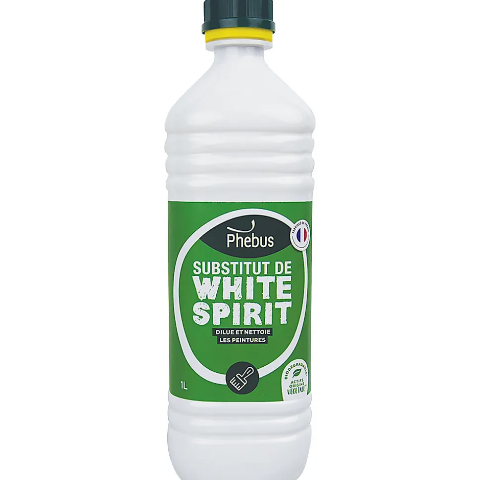 Substitut de white spirit 1L. Dilue les peintures glycérophtaliques. Nettoie le matériel d’application par trempage (pinceaux, brosses, rouleaux. . .). Nettoie les taches de peintures fraîches sur tous supports.