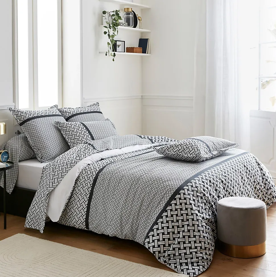 - Taie de traversin 43×240 cm Percale 80 fils/cm² RIVIERA Parure de lit percale de coton avec un motif graphique effet tissage de plusieurs tailles dans des tons noir, gris et blanc.