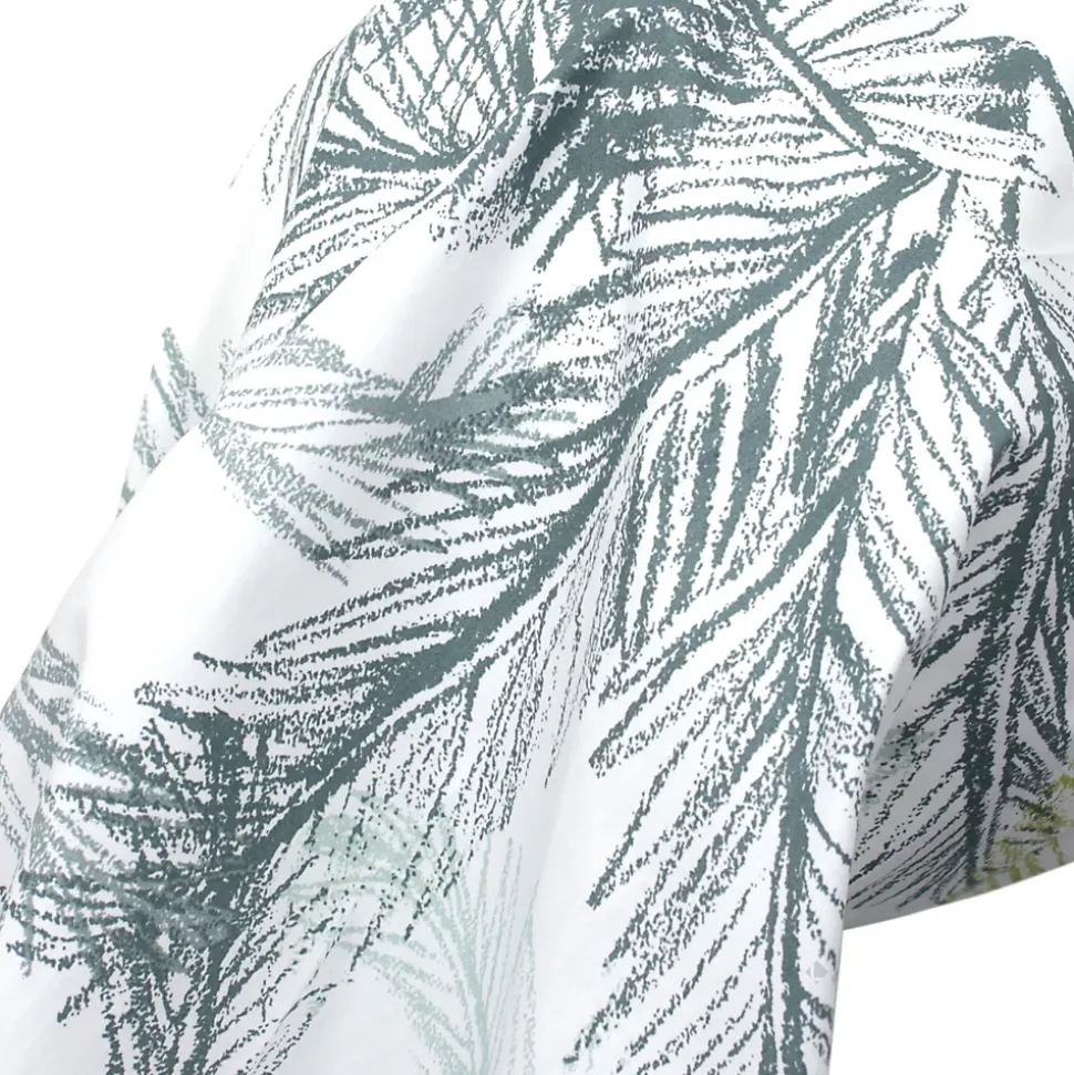 - Taie de traversin 43×240 cm Percale 80 fils/cm² TRINIDAD Parure de lit 100% coton avec un imprimé effet végétation luxuriante, dans des un camaieu de vert sur fond blanc.