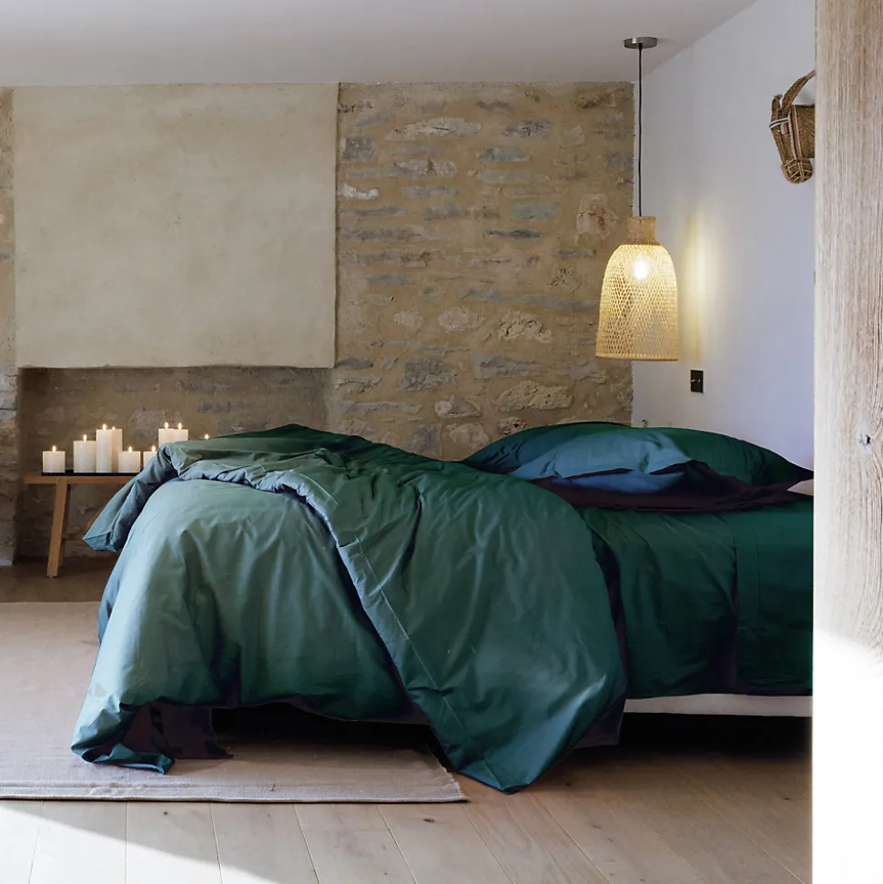 Taie de traversin percale de coton 43×190 cm MANOIR vert CanardOffrez-vous une nuit de sommeil parfaite avec la taie de traversin percale de coton 43×190 cm de la collection MANOIR. Cette taie de traversin pour 2 places est fabriquée à 100% en percale de coton, avec un tissage serré de 80 fils/cm2, ce qui lui confère un toucher soyeux et doux pour un confort incomparable. La qualité de la percale de coton assure une excellente tenue au lavage, avec des coloris garantis grand-teint qui résistent à la décoloration et gardent leur éclat lavage après lavage. Cela signifie que vous pouvez profiter de la beauté et de la douceur de cette taie de traversin pendant longtemps, sans compromettre son apparence. La collection MANOIR vous permet de composer votre parure de lit selon vos dimensions et préférences. Grâce à une large gamme d’articles disponibles en vente à l’unité, vous pouvez associer cette taie de traversin avec des draps-housses, des draps plats, des housses de couette, des taies d’oreiller et des taies de traversin, tous disponibles dans une variété de teintes. Vous pouvez ainsi créer un ensemble harmonieux et personnalisé qui reflète parfaitement votre style et vos goûts.Cette taie de traversin est fabriquée à partir de coton longues fibres peignées, ce qui lui confère une douceur et une durabilité exceptionnelles. Le traitement Easy-care facilite l’entretien de la taie, rendant le repassage superflu et vous permettant de profiter de la qualité de votre linge de lit sans effort supplémentaire. Les couleurs unies garanties grand-teint ajoutent une touche de sophistication et d’élégance à votre chambre à coucher. Vendue à l’unité, la taie de traversin de la collection MANOIR est disponible en plusieurs coloris unis. Que vous préfériez des teintes neutres et apaisantes ou des couleurs plus vives et dynamiques, vous trouverez la couleur parfaite pour compléter votre décor. Le coloris rouge Carmin, en particulier, ajoute une note de chal