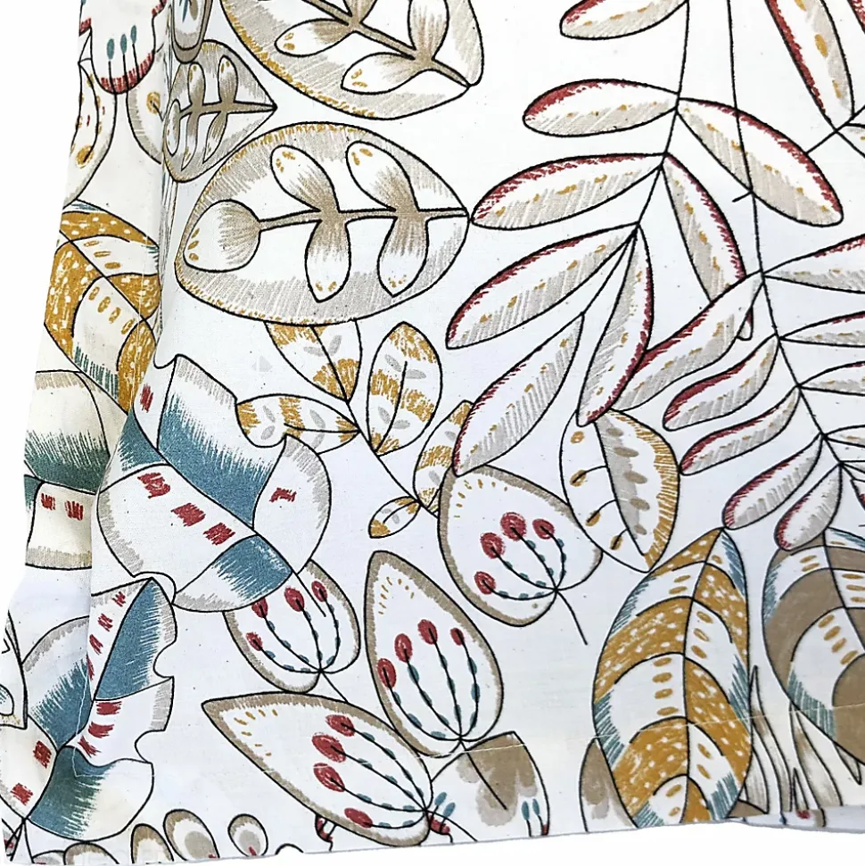 - Taie d’oreiller rectangulaire 50×70 cm OKY Naturel Parure de lit 100% coton avec motifs imprimés de feuillage avec des subtiles touches de couleur jaune, bleu et rouge sur fond écru.