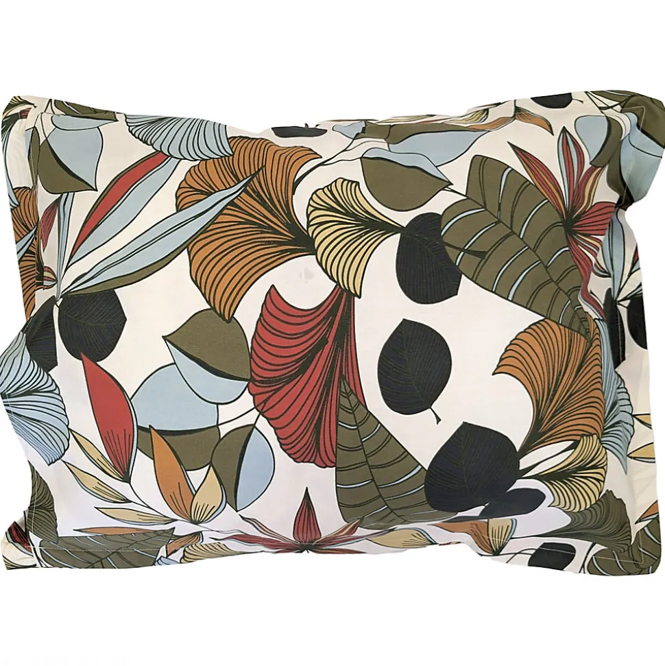 - Taie d’oreiller 50×70 percale 100% coton 80 fils/cm² CASCADE percale de coton avec un motif imprimé all-over de feuilles et de fleurs dans un coloris bleu-vert sauge.