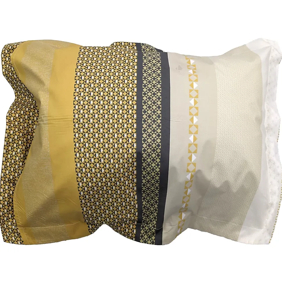 Taie d’oreiller rectangulaire 50×70 cm Percale 80 fils/cm² MARLOW Parure de lit 100% coton avec des motifs imprimés de jeu de rayures, associé à des micro-motifs géométriques et des effets de tissages dans des tons beige, gris et miel.