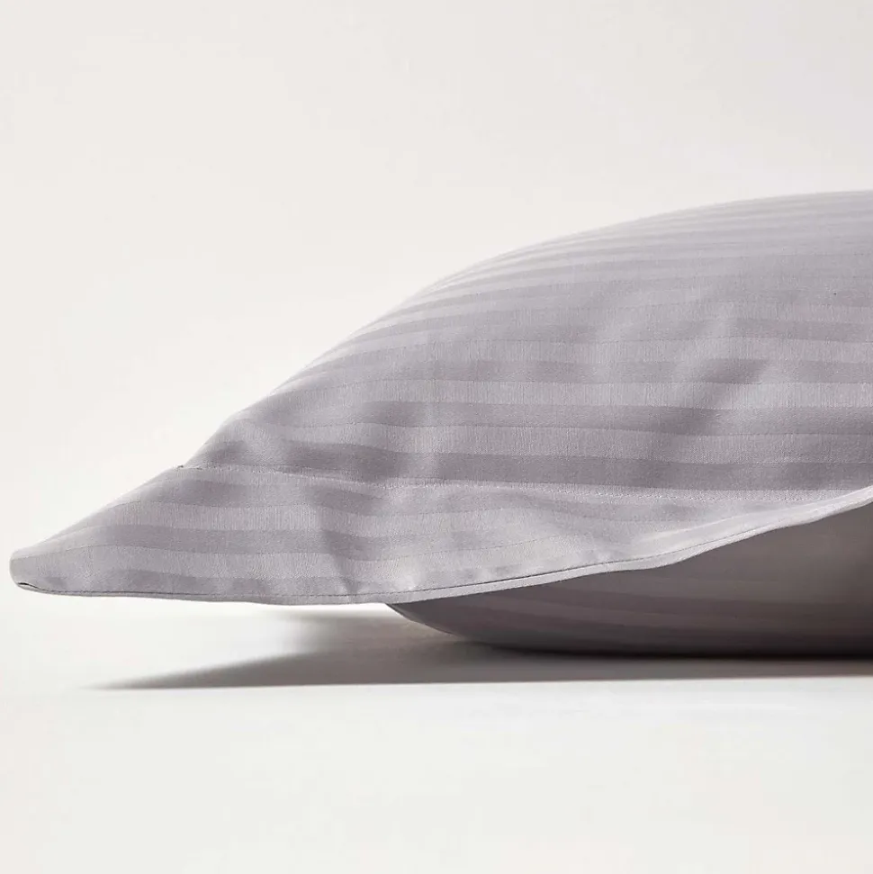 Taie d’oreiller à  volants gris satin rayé en coton égyptien 330 fils, 50×75 cm – HOMESCAPES