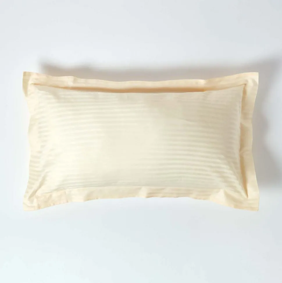 Taie d’oreiller à  volants jaune pastel satin rayé en coton égyptien 330 fils, 50×90 cm – HOMESCAPES