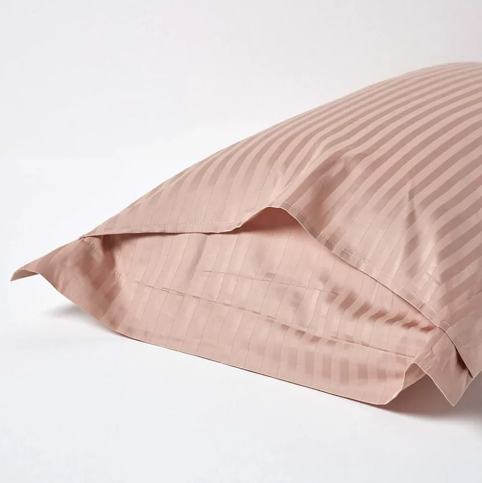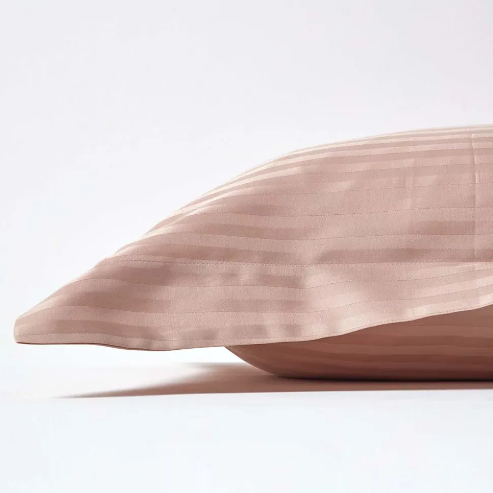 Taie d’oreiller à  volants taupe satin rayé en coton égyptien 330 fils, 50×75 cm – HOMESCAPES