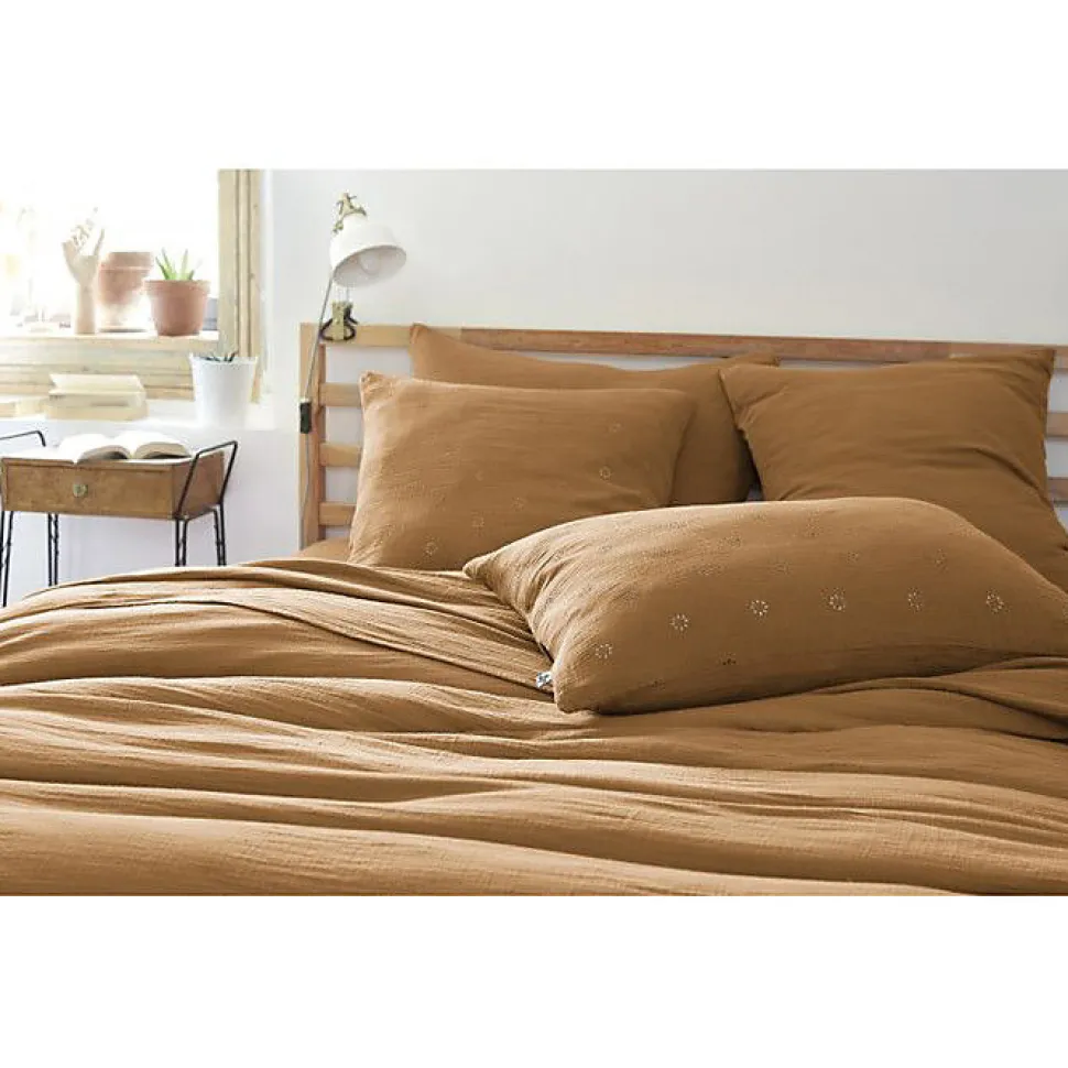 Taie d'oreiller Brodée Déco "Gaïa Boho" 60 x 60 cm & 50 x 70 cm "Gaze de Coton" - Gaïa Boho Camel - 60 x 60 cm