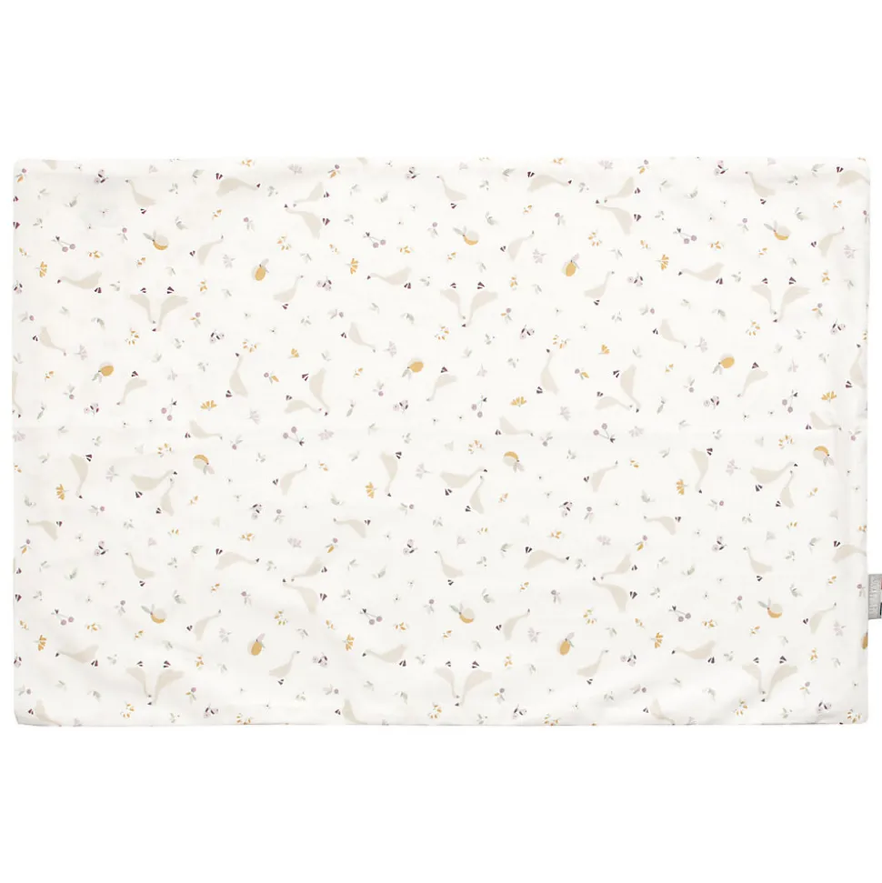 - Design réversible et esthétique : Une face en coton imprimé avec des motifs d’oies, de baies et de fleurs pour une touche poétique et l’autre en gaze de coton blanche minimaliste pour un look élégant et apaisant.