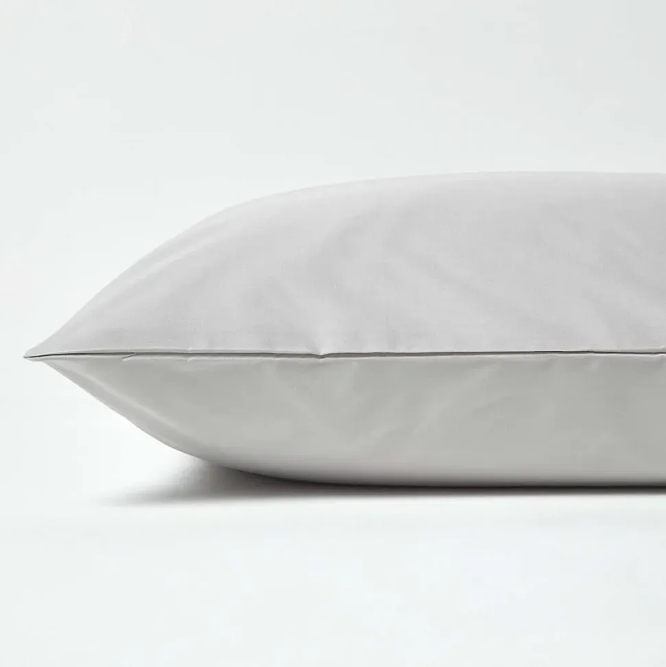 Pour compléter un ensemble de lit gris ou bien trancher avec une autre couleur, découvrez nos taies d’oreillers en gris argenté. Cette teinte est originale et lumineuse. Ces taies d’oreillers ont été fabriquées dans un coton égyptien, celui-là est renommé pour sa douceur et son effet soyeux. Le tissage est composé de 200 fils soit une densité de 80 fils par cm², ce qui le rend plus résistant encore. Cette matière très confortable gardera votre tête au chaud l’hiver et au frais l’été. Vous pouvez faire votre choix parmi 3 dimensions différentes. Ces taies peuvent être passées en machine à 40°C sur cycle coton et également au sèche-linge.
