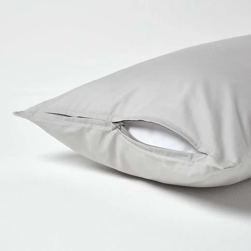 Pour compléter un ensemble de lit gris ou bien trancher avec une autre couleur, découvrez nos taies d’oreillers en gris argenté. Cette teinte est originale et lumineuse. Ces taies d’oreillers ont été fabriquées dans un coton égyptien, celui-là est renommé pour sa douceur et son effet soyeux. Le tissage est composé de 200 fils soit une densité de 80 fils par cm², ce qui le rend plus résistant encore. Cette matière très confortable gardera votre tête au chaud l’hiver et au frais l’été. Vous pouvez faire votre choix parmi 3 dimensions différentes. Ces taies peuvent être passées en machine à 40°C sur cycle coton et également au sèche-linge.