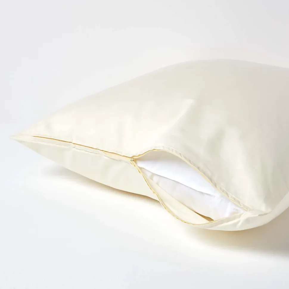 Taie d’oreiller ivoire en satin de coton égyptien 1000 fils, 80×80 cm – HOMESCAPES