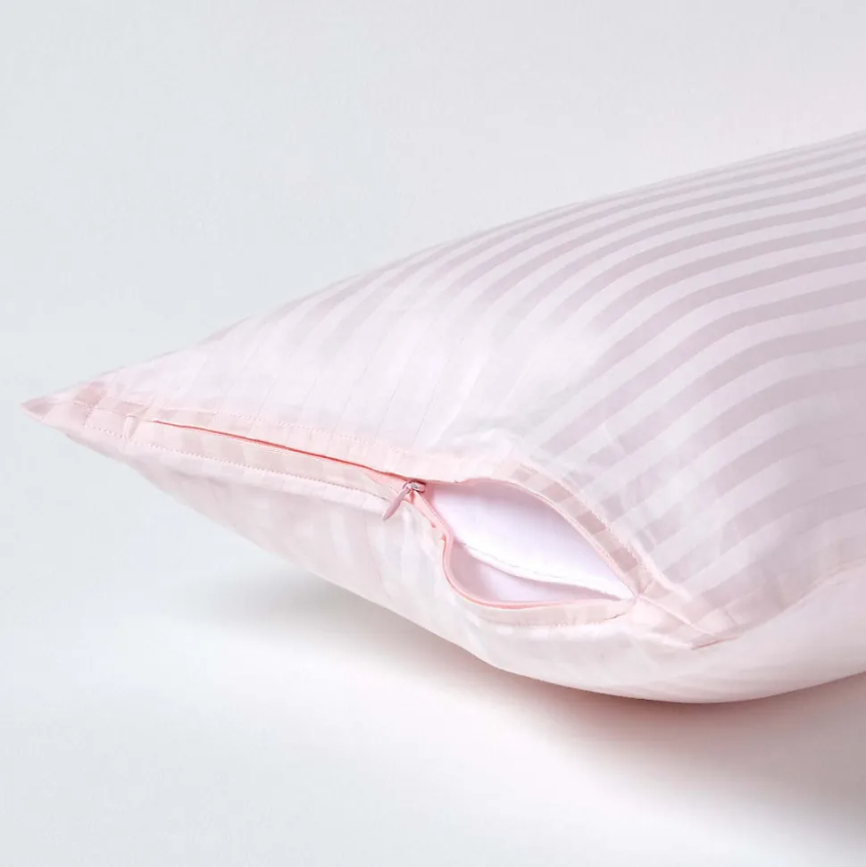 Taie d’oreiller rose satin rayé en coton égyptien 330 fils, 40×80 cm – HOMESCAPES
