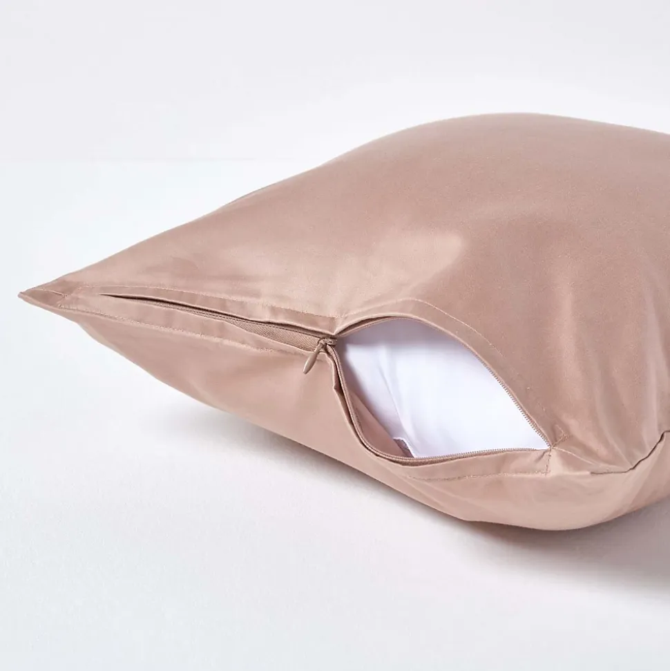 Taie d’oreiller taupe en satin de coton égyptien 1000 fils, 40×40 cm – HOMESCAPES