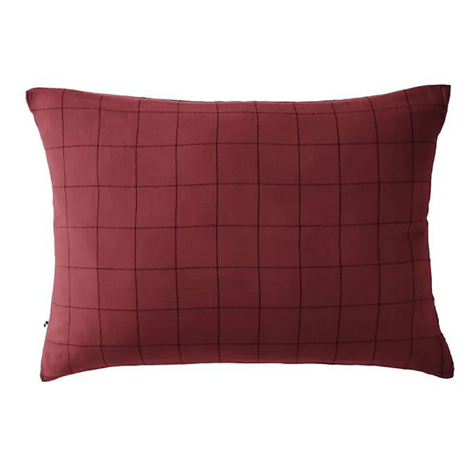 Taie d'oreiller Tissé-teint grands carreaux Déco "Gaïa Match" 60 x 60 cm & 50 x 70 cm "Gaze de Coton" - Gaïa Match Lie de vin - 50