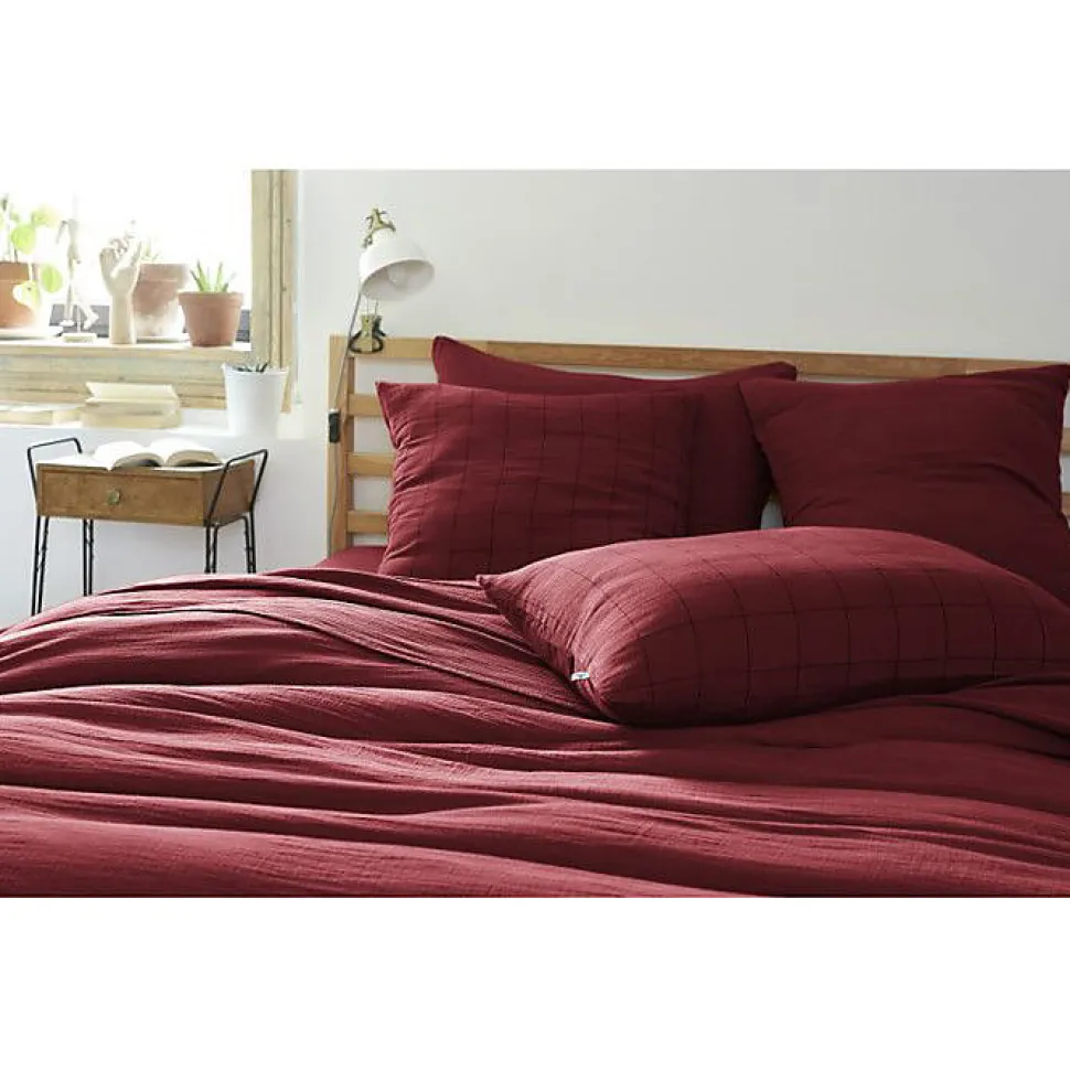 Taie d’oreiller Tissé-teint grands carreaux Déco « Gaïa Match » 60 x 60 cm & 50 x 70 cm « Gaze de Coton » – Gaïa Match Lie de vin – 50