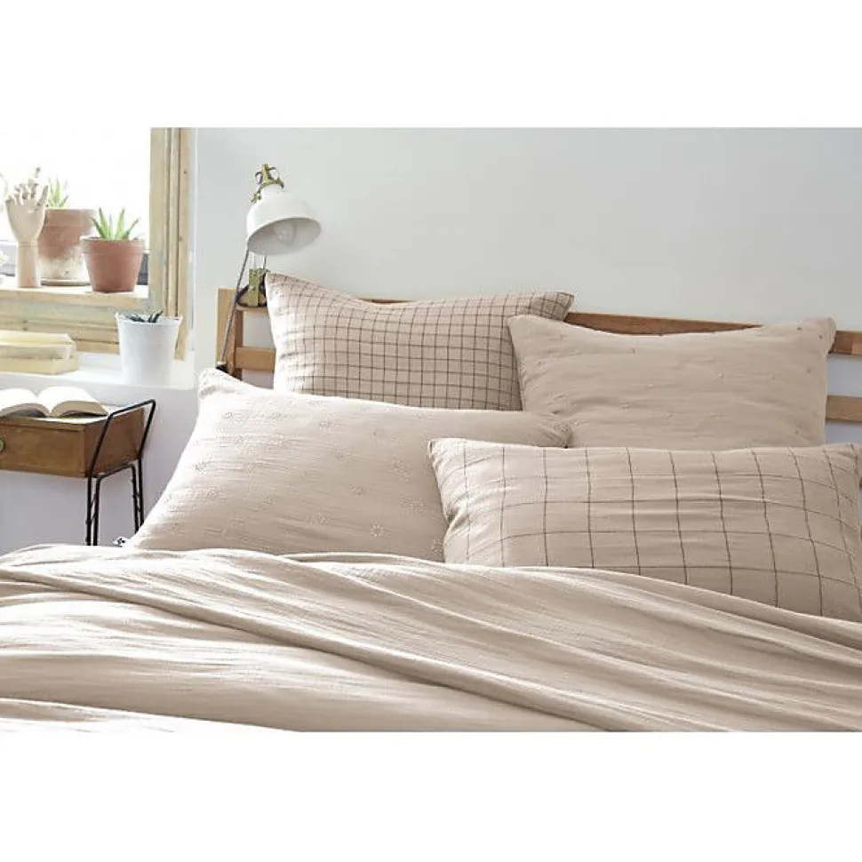 Taie d'oreiller Tissé-teint petits carreaux Déco "Gaïa Mix" 60 x 60 cm & 50 x 70 cm "Gaze de Coton" - Gaïa Mix Pampa - 60 x 60 cm