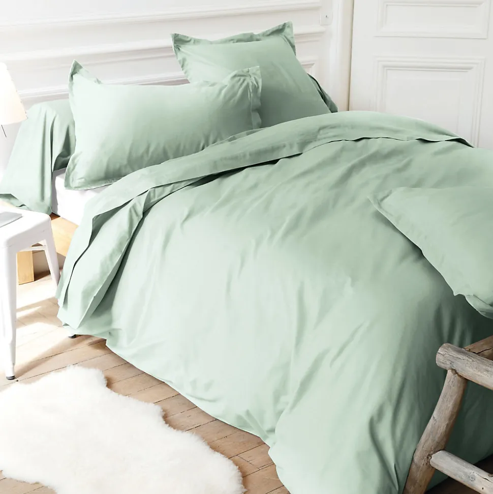 Taie d’oreiller 65x65cm coloris uni vert Fleur d’amandier , collection ALTO 100% coton longues fibres peignées tissage 57 fils très serrés, avec traitement adoucissant Easycare (repassage facile) doux au toucher et très résistant, confectionné en France
