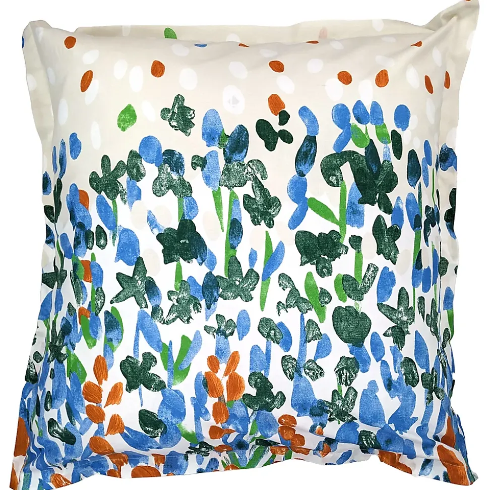 Taie d’oreiller 65×65 cm EVASION Vert fougère 100% coton avec des motifs de végétation vert, bleu et corail