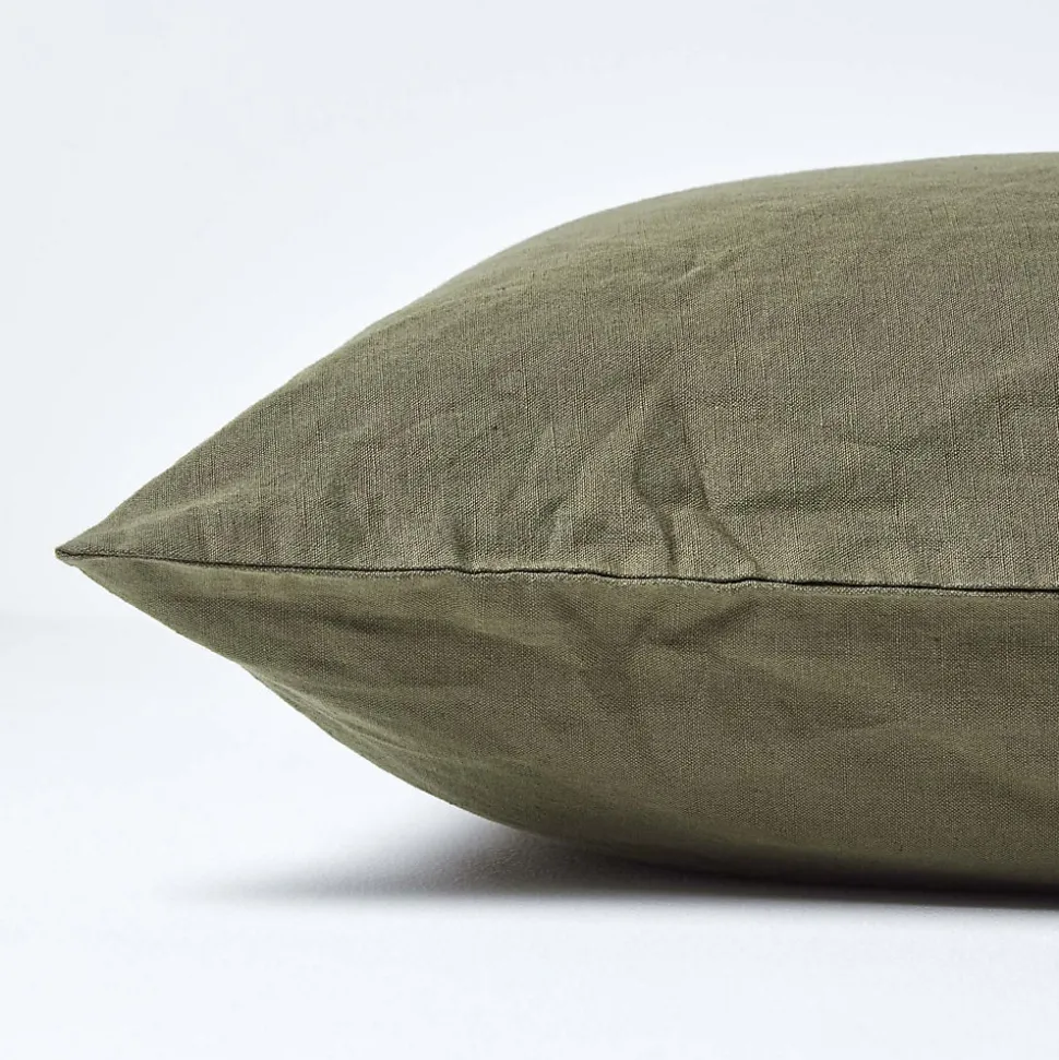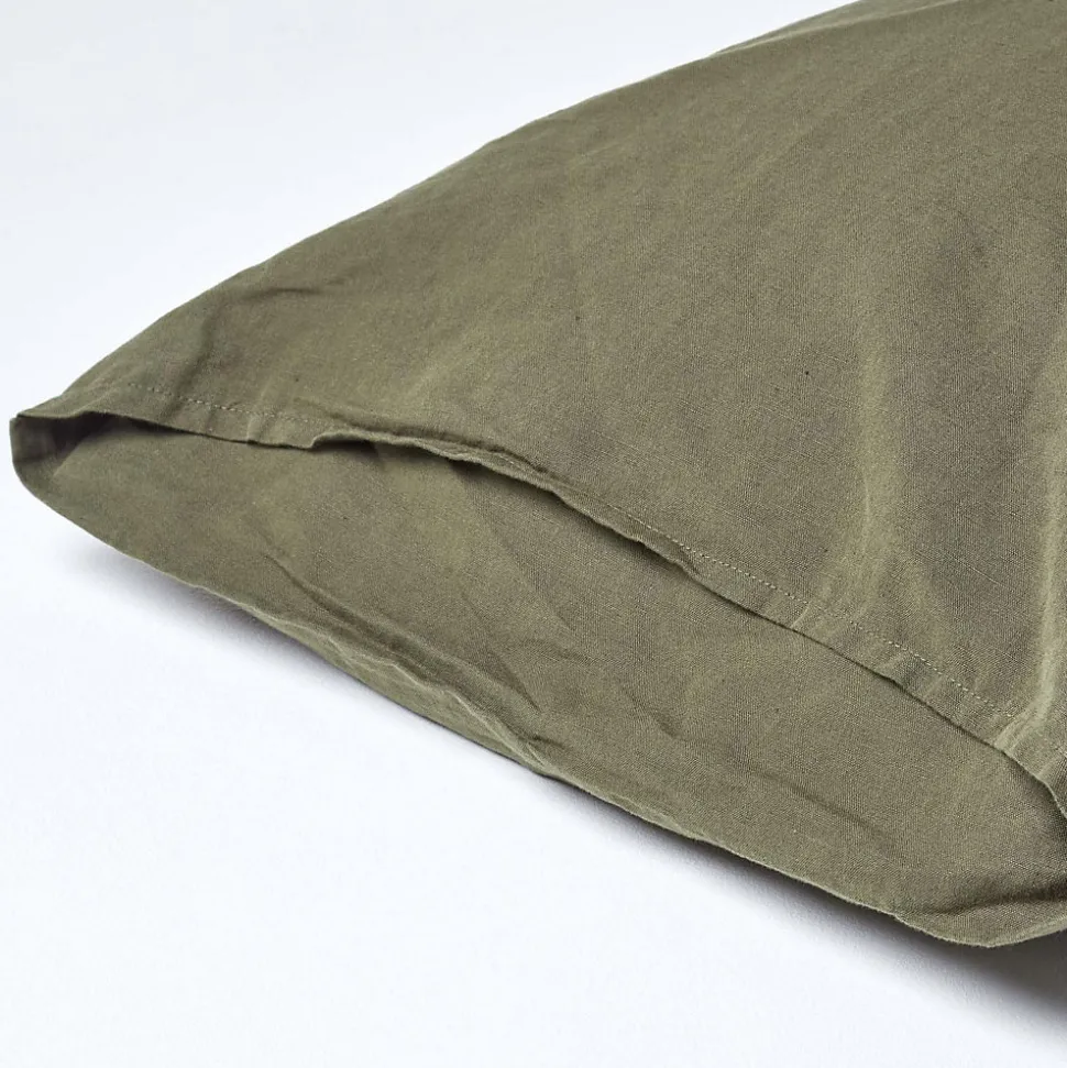 Taie d’oreiller vert mousse en lin lavé, 50×75 cm – HOMESCAPES