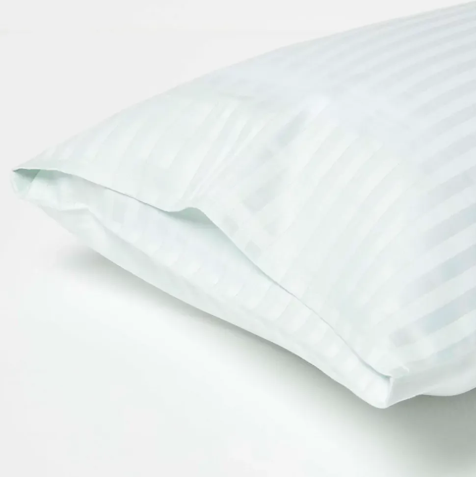 Taies d’oreiller enfant bleu satin rayé en coton égyptien 330 fils, 40×60 cm, lot de 2 – HOMESCAPES