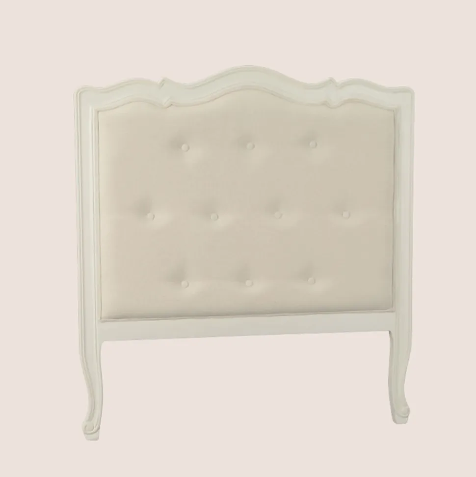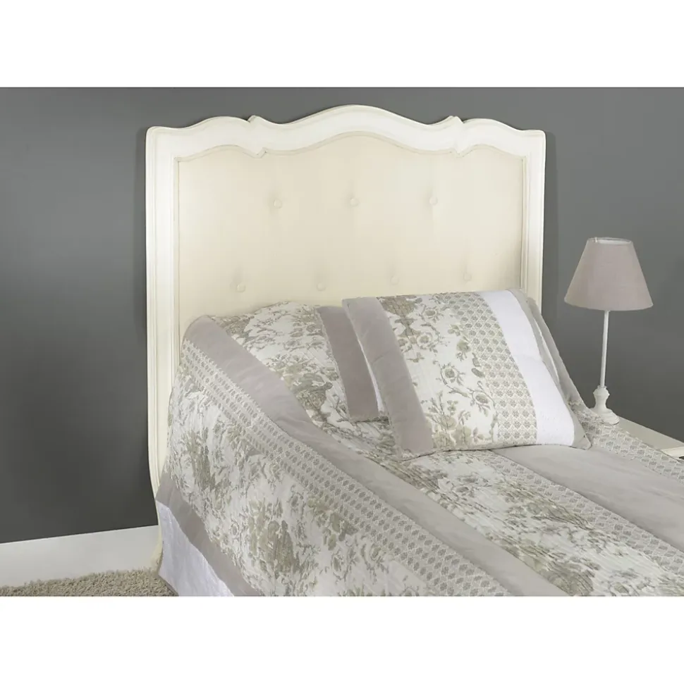 Cette jolie tête de lit d’une place de la collection Muriane apportera à votre chambre une touche romantique et cosy. Le design épuré et intemporel de cette tête de lit donnera à votre pièce une note poétique et une ambiance cocooning. Description technique : Tête de lit avec patine et vernis acrylique livrée montée.Tête de lit en bois, garni de tissu coton écru.Poids 11 KgDimensions : L: 104 x H: 112 x P: 4 cm.