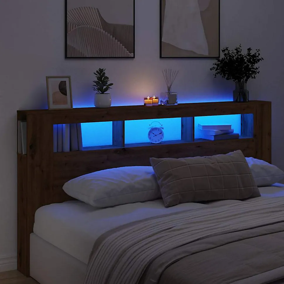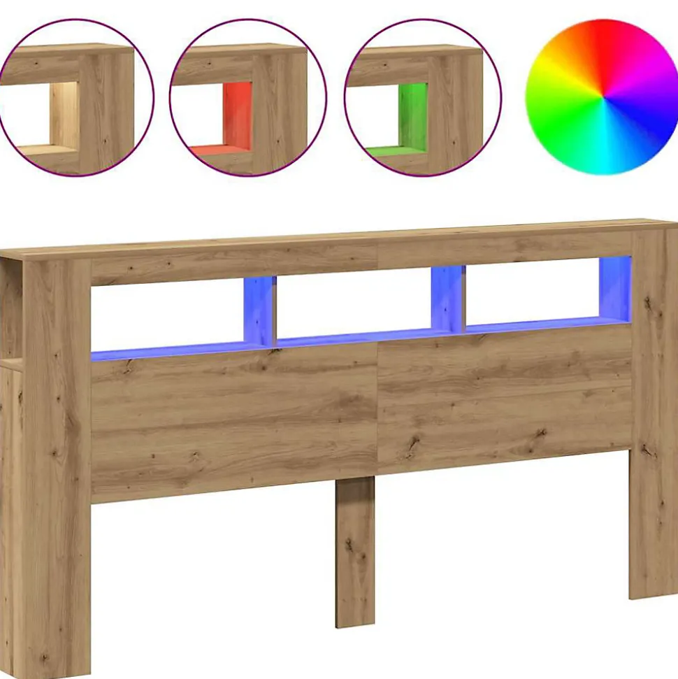 Cette tête de lit à LED classique, au design élégant, donne à votre cadre de lit une touche de modernité étonnante et convient parfaitement à toute chambre à coucher. Matériau durable : le bois d’ingénierie est d’une qualité exceptionnelle avec une surface lisse et présente également résistance, stabilité et résistance à l’humidité.Lumières LED RVB : la tête de lit est équipée de lumières LED RVB vibrantes. Avec divers menus personnalisables, vous pouvez changer sans effort la couleur des lumières et même les régler automatiquement. Ces lumières LED renforcent non seulement l’aspect contemporain de la tête de lit, mais ajoutent également à son attrait tendance.Excellent soutien : la tête de lit vous offre un excellent soutien dorsal lorsque vous vous asseyez dans votre lit pour lire ou regarder la télévision.Dessus stable : le dessus de la tête de lit avec rangement est parfait pour exposer vos objets décoratifs, cadres photos et réveils. Bon à savoir :La livraison comprend uniquement la tête de lit à LED. Le cadre de lit et le matelas ne sont pas inclus. Vous pouvez consulter notre boutique pour les cadres et matelas assortis.Ce produit est doté d’un connecteur USB qui nécessite une source d’alimentation USB de 5V certifiée (non incluse). Attention :Pour éviter qu’il ne bascule, ce produit doit être utilisé avec le dispositif de fixation murale fourni.Couleur : chêne artisanalMatériau : bois d’ingénierieDimensions : 200 x 18,5 x 103,5 cm (l x P x H)Assemblage requis : ouiLegal Documents:Vous trouverez ici plus de détails sur la façon d’empêcher vos meubles de basculer