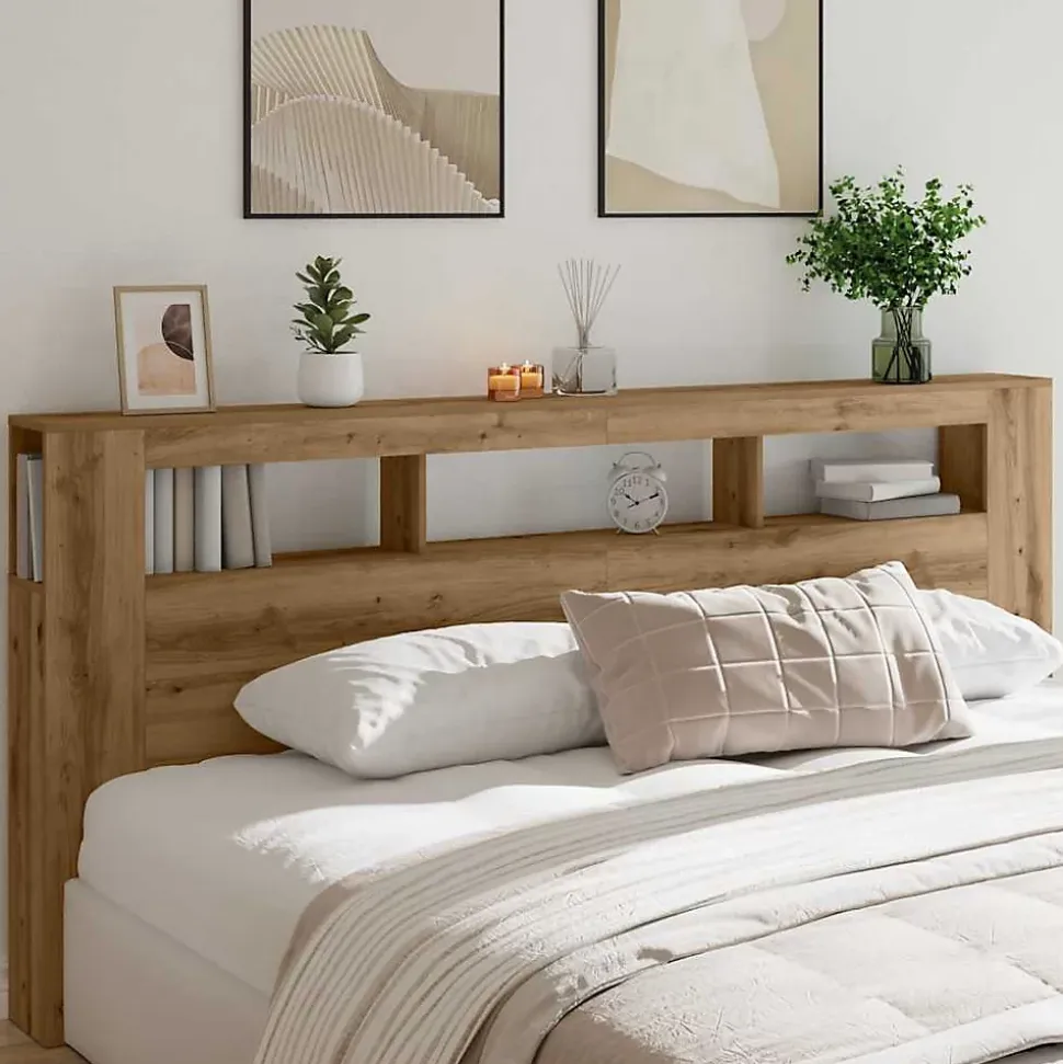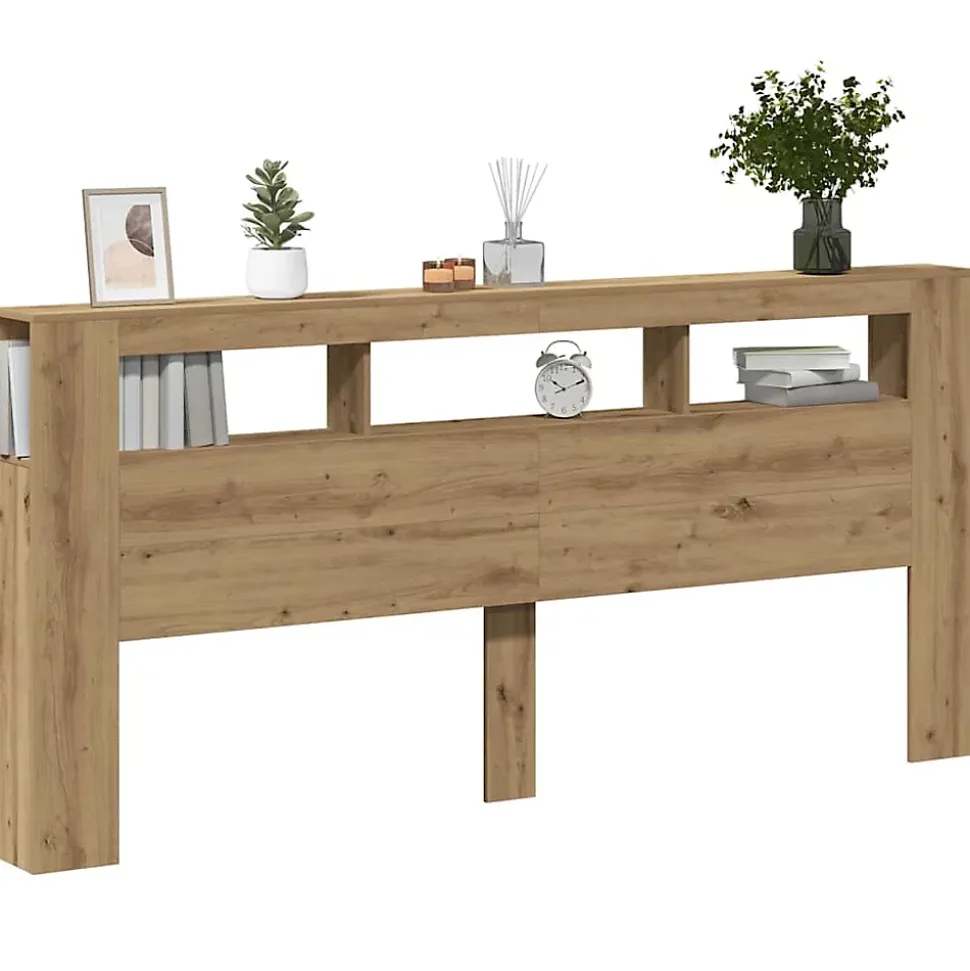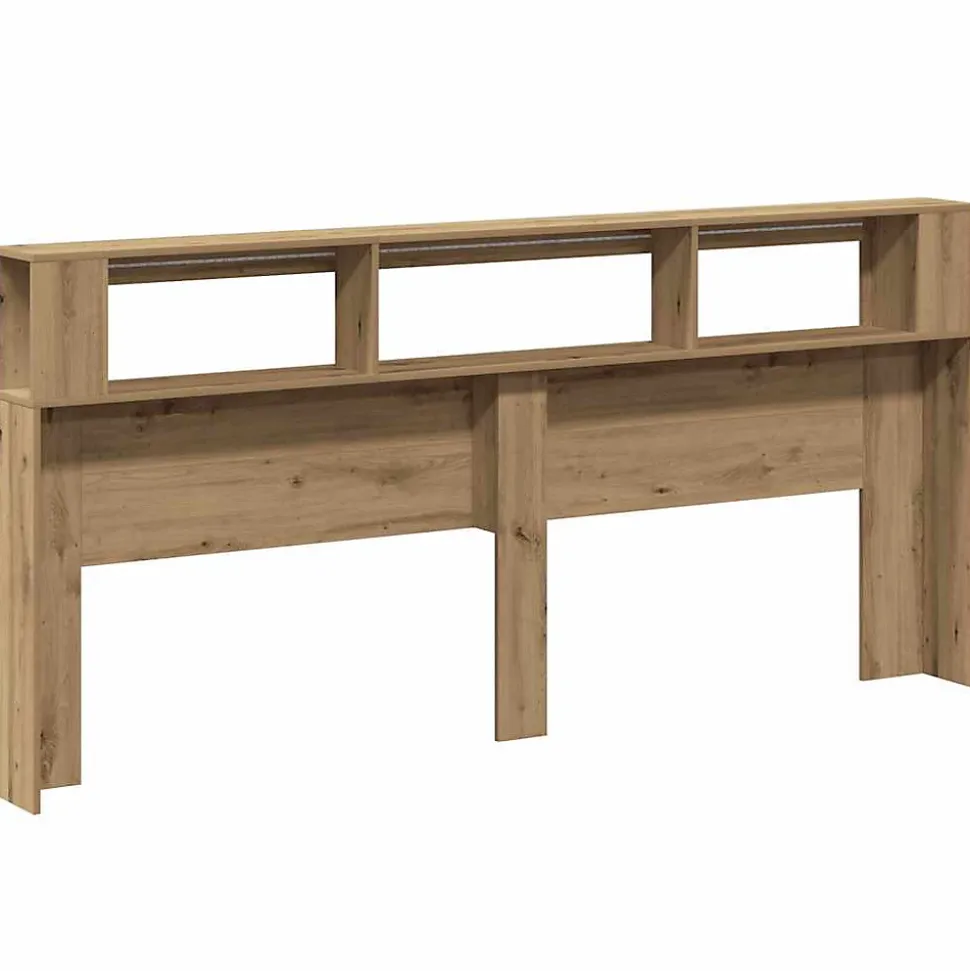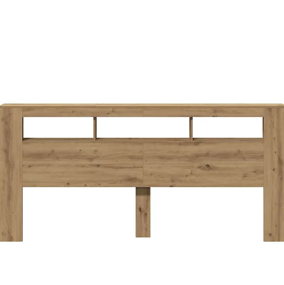 Cette tête de lit à LED classique, au design élégant, donne à votre cadre de lit une touche de modernité étonnante et convient parfaitement à toute chambre à coucher. Matériau durable : le bois d’ingénierie est d’une qualité exceptionnelle avec une surface lisse et présente également résistance, stabilité et résistance à l’humidité.Lumières LED RVB : la tête de lit est équipée de lumières LED RVB vibrantes. Avec divers menus personnalisables, vous pouvez changer sans effort la couleur des lumières et même les régler automatiquement. Ces lumières LED renforcent non seulement l’aspect contemporain de la tête de lit, mais ajoutent également à son attrait tendance.Excellent soutien : la tête de lit vous offre un excellent soutien dorsal lorsque vous vous asseyez dans votre lit pour lire ou regarder la télévision.Dessus stable : le dessus de la tête de lit avec rangement est parfait pour exposer vos objets décoratifs, cadres photos et réveils. Bon à savoir :La livraison comprend uniquement la tête de lit à LED. Le cadre de lit et le matelas ne sont pas inclus. Vous pouvez consulter notre boutique pour les cadres et matelas assortis.Ce produit est doté d’un connecteur USB qui nécessite une source d’alimentation USB de 5V certifiée (non incluse). Attention :Pour éviter qu’il ne bascule, ce produit doit être utilisé avec le dispositif de fixation murale fourni.Couleur : chêne artisanalMatériau : bois d’ingénierieDimensions : 220 x 18,5 x 103,5 cm (l x P x H)Assemblage requis : ouiLegal Documents:Vous trouverez ici plus de détails sur la façon d’empêcher vos meubles de basculer