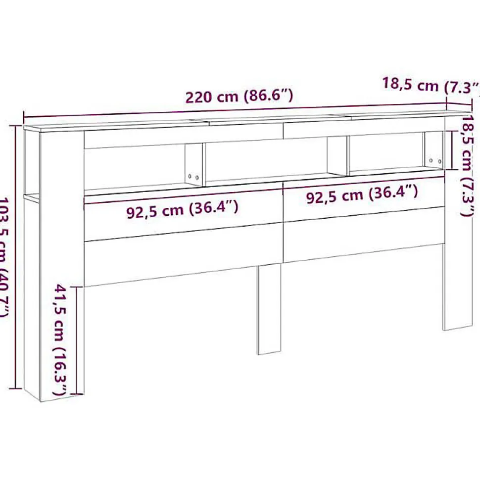 Cette tête de lit à LED classique, au design élégant, donne à votre cadre de lit une touche de modernité étonnante et convient parfaitement à toute chambre à coucher. Matériau durable : le bois d’ingénierie est d’une qualité exceptionnelle avec une surface lisse et présente également résistance, stabilité et résistance à l’humidité.Lumières LED RVB : la tête de lit est équipée de lumières LED RVB vibrantes. Avec divers menus personnalisables, vous pouvez changer sans effort la couleur des lumières et même les régler automatiquement. Ces lumières LED renforcent non seulement l’aspect contemporain de la tête de lit, mais ajoutent également à son attrait tendance.Excellent soutien : la tête de lit vous offre un excellent soutien dorsal lorsque vous vous asseyez dans votre lit pour lire ou regarder la télévision.Dessus stable : le dessus de la tête de lit avec rangement est parfait pour exposer vos objets décoratifs, cadres photos et réveils. Bon à savoir :La livraison comprend uniquement la tête de lit à LED. Le cadre de lit et le matelas ne sont pas inclus. Vous pouvez consulter notre boutique pour les cadres et matelas assortis.Ce produit est doté d’un connecteur USB qui nécessite une source d’alimentation USB de 5V certifiée (non incluse). Attention :Pour éviter qu’il ne bascule, ce produit doit être utilisé avec le dispositif de fixation murale fourni.Couleur : vieux boisMatériau : bois d’ingénierieDimensions : 220 x 18,5 x 103,5 cm (l x P x H)Assemblage requis : ouiLegal Documents:Vous trouverez ici plus de détails sur la façon d’empêcher vos meubles de basculer