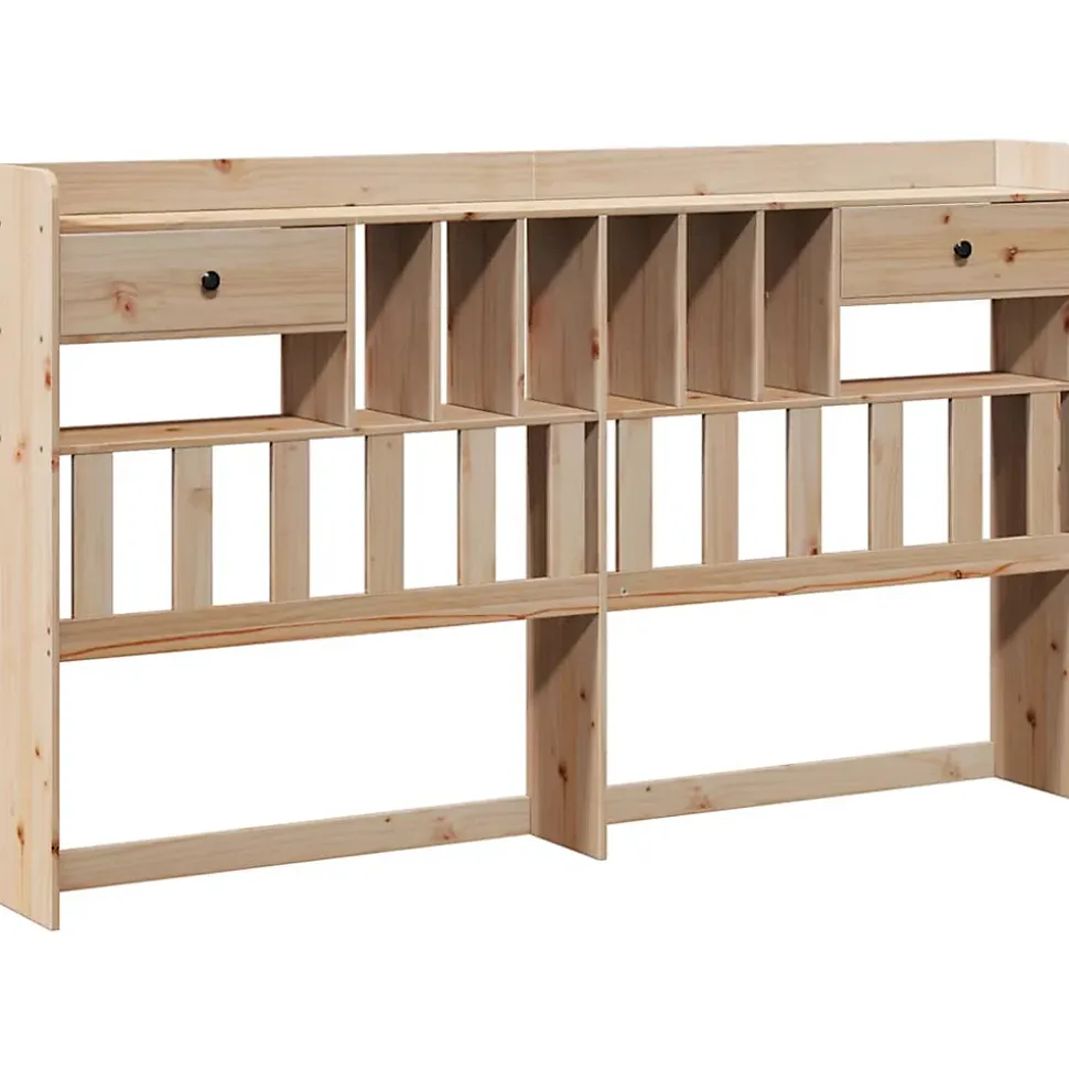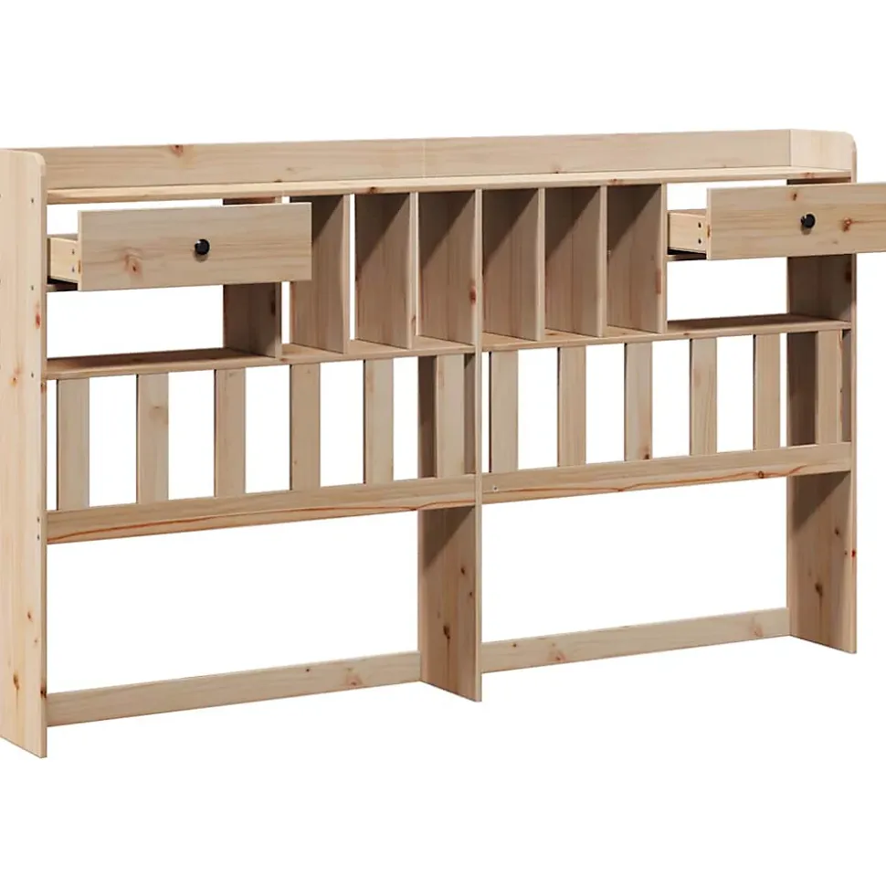Cette tête de lit élégante donne à votre cadre de lit un aspect complet et s’adapte à n’importe quelle chambre à coucher. Cadre stable et durable : le bois de pin massif est connu pour sa résistance et sa durabilité. Ses grains droits et ses nœuds distinctifs contribuent à son charme rustique.Grand espace de rangement : la tête de lit élégante est dotée de 6 compartiments pratiques et de 2 tiroirs, offrant suffisamment d’espace de rangement pour garder tous vos essentiels de nuit à portée de main.Peu encombrant : cette tête de lit est une option peu encombrante qui peut remplacer la table de chevet, ce qui permet d’optimiser l’espace de votre chambre à coucher et la rend idéale pour les espaces restreints ou limités.Tête de lit sur pied : la tête de lit sur pied offre une solution simple pour un placement et un repositionnement sans effort, sans qu’il soit nécessaire pour l’installer au mur.Matériau : bois de pin massif (non traité)Dimensions : 186 x 23 x 110 cm (l x P x H)Convient à la largeur de matelas : 180 cmAvec compartiments de rangementAvec 2 tiroirsAssemblage requis : oui